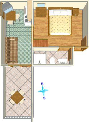 Ferienwohnung für zwei Personen mit Zusatzbett (23 m2)