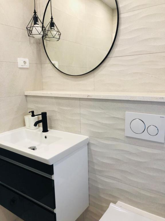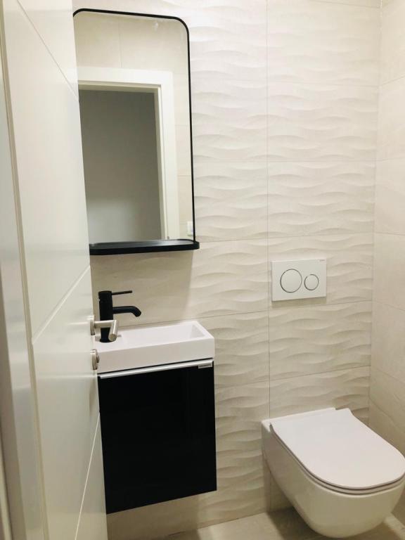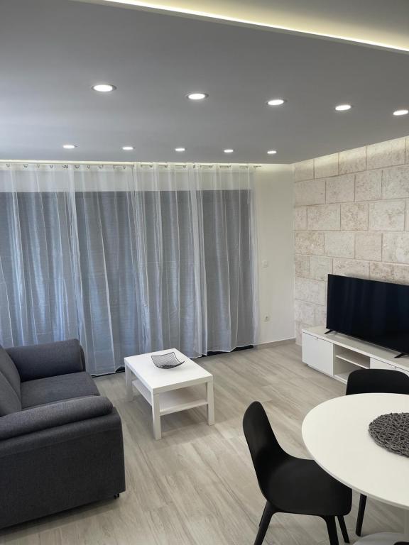 Neue, moderne Apartments mit 2 separaten Schlafzimmern (Queensize-Bett in jedem Zimmer, kein Zustellbett), Küche mit Wohnzimmer (Couch nicht ausziehbar), Bad, WC, Waschküche, Parkplatz direkt vor dem Gebäude. Jedes Zimmer in der Wohnung verfügt über Klimaanlage, Smart-TV, superschnelles Internet, einen Balkon mit Blick auf das Meer, nur wenige Gehminuten vom Strand Kamena entfernt.