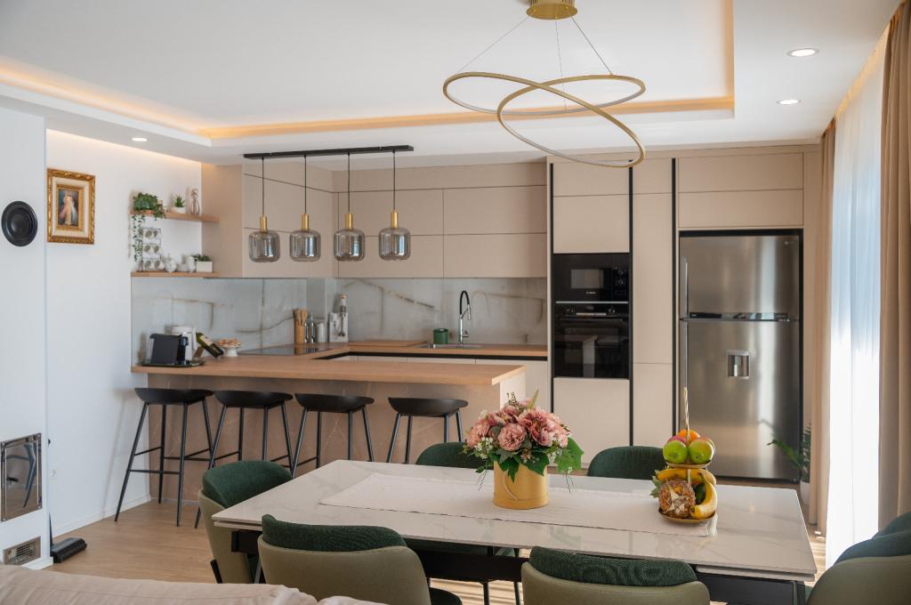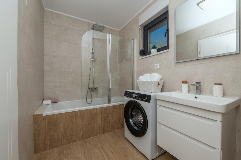 Wir vermieten ein modern eingerichtetes und voll ausgestattetes Apartment mit 100 m² in Tučepi, ideal für einen Familienurlaub. Das Apartment verfügt über zwei Schlafzimmer, zwei Badezimmer, ein geräumiges Wohnzimmer mit Küche und Essbereich sowie eine große Terrasse mit Panoramablick auf das Meer und die Inseln. Das Apartment ist klimatisiert und verfügt über kostenloses WLAN, TV, Waschmaschine und Geschirrspüler. Parkplätze stehen vor dem Haus zur Verfügung. Der Strand ist nur 5 Gehminuten entfernt. Wenn Sie eine komfortable Unterkunft mit kristallklarem Meer und einer schönen Promenade suchen, ist unser Apartment der perfekte Ort für Ihren Urlaub.