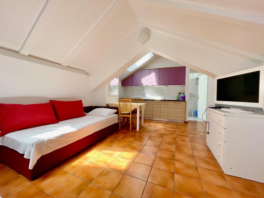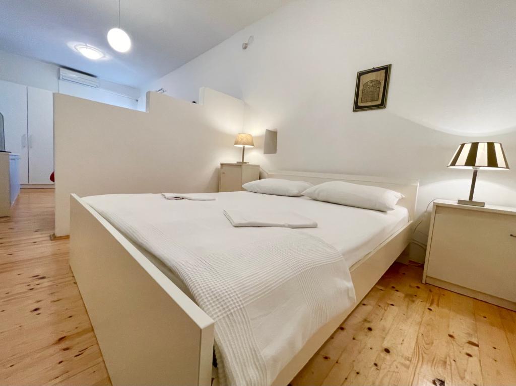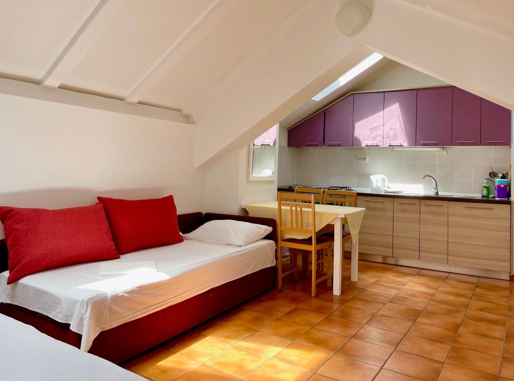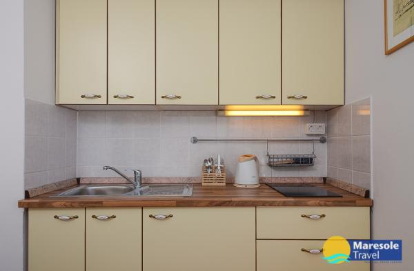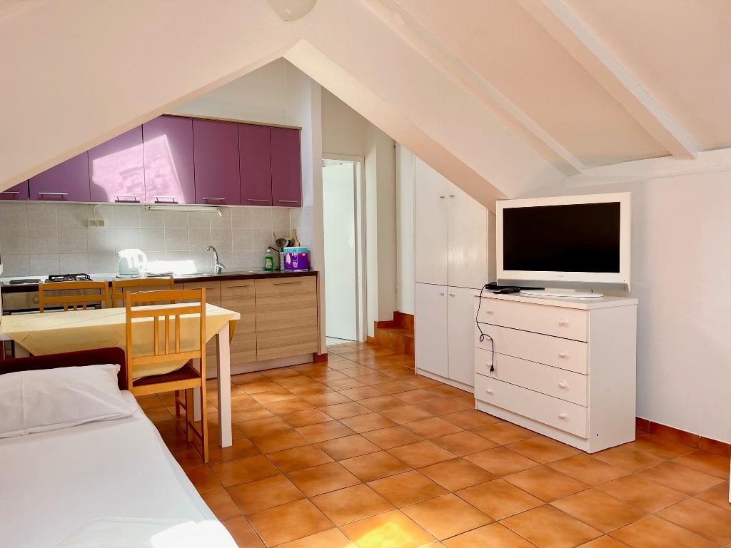Moderne Wohnungen befinden sich im ersten Stock und im zweiten Stock (Dachgeschoss) in einem Hause in der Mitte, auf der ersten Linie zum Strand, das Meer. Appartements besteht aus einem Wohnzimmer mit Küche und Esszimmer in einem, eine Wohnung mit einem Balkon mit Meerblick, ein Schlafzimmer mit Doppelbett, Bad mit Dusche / WC. Parken im öffentlichen Raum vor dem Haus. - Zuschlag für Haustiere E5, 00 pro Tag.