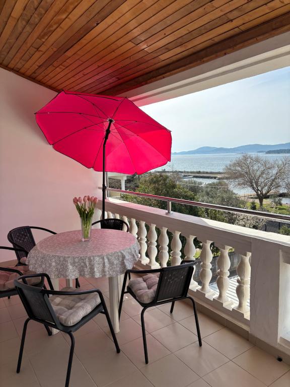 Die Wohnung, sauber, bequemes Bett, mit allem ausgestattet (Mikrowelle, Wasserkocher, Waschmaschine), einladend wie die Besitzerin Dea. Es gibt eine Veranda mit schöner Aussicht, ideal zum Frühstück.