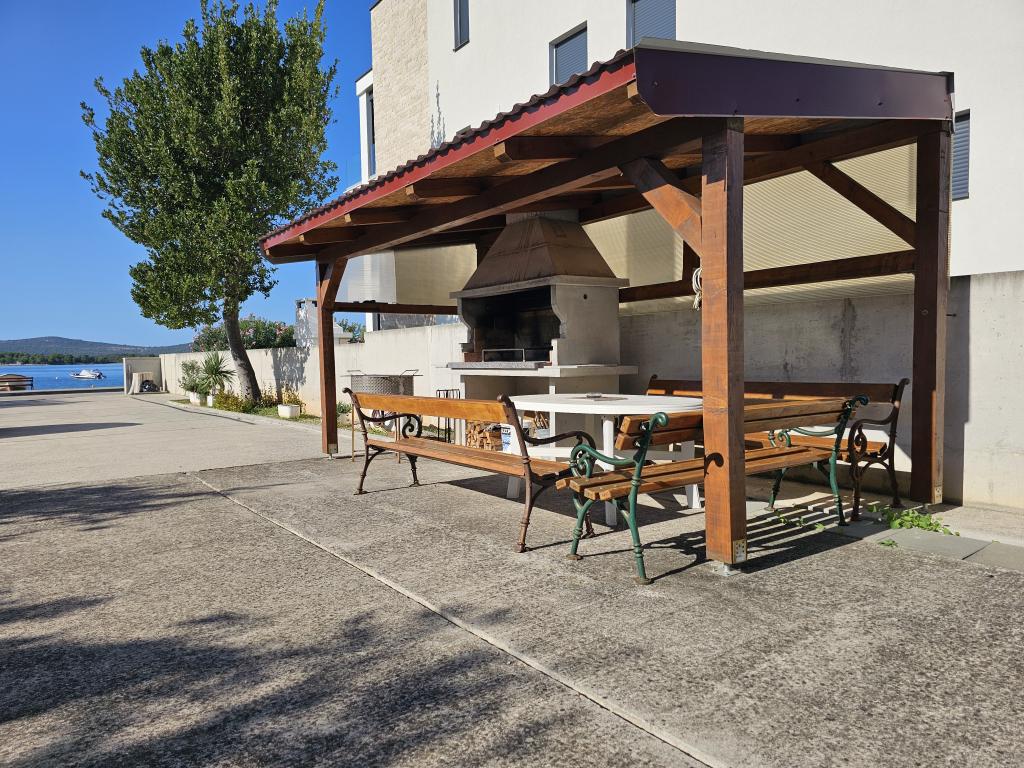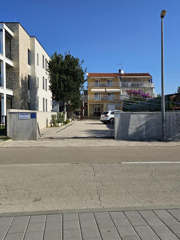 Die Apartments Hodak liegen direkt am Meer an der Promenade zwischen Sveti Filip i Jakov und Turanj. Im Innenhof befinden sich ein geräumiger, kostenloser Parkplatz, ein Grillplatz und eine Außendusche, die auf Anfrage genutzt werden können. Jedes Apartment verfügt über einen separaten Eingang außerhalb des Treppenhauses und bietet zwei Schlafzimmer mit Doppelbetten, ein Badezimmer, eine Küche und ein Wohnzimmer. Alle Apartments sind klimatisiert und mit einem Fernseher und kostenlosem WLAN ausgestattet. Das erste Apartment befindet sich im ersten Stock und verfügt über eine große Terrasse, das zweite im zweiten Stock über eine überdachte Terrasse mit herrlichem Blick auf das Meer und die umliegenden Inseln. Der angelegte Strand liegt direkt vor dem Innenhof und ist ruhig und kinderfreundlich. Zwei Bojen zum Anlegen von Schnellbooten stehen den Gästen zur Verfügung. Die Apartments können vom 1. Juni bis zum 30. September gemietet werden.