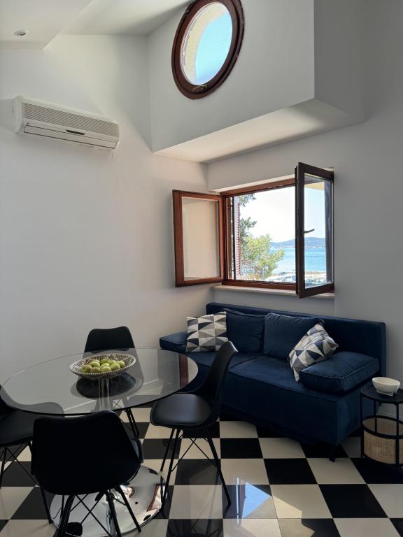 Die komplett und modern ausgestatteten Apartments befinden sich in ruhiger Lage direkt am Meer. Jedes Apartment verfügt über einen Balkon oder eine Terrasse mit Meerblick, einen privaten Parkplatz und einen Außenbereich. Strand, Geschäfte, Restaurants, Cafés, Bäckerei und weitere Einrichtungen sind maximal 10 Gehminuten entfernt – alles, was Sie für einen angenehmen Aufenthalt benötigen, ist bequem zu Fuß erreichbar. Ein besonderes Highlight ist der private Bootsanleger direkt vor dem Apartment, geeignet für Boote bis zu 7 Metern Länge. Das Boot ist an einer Boje und einem Steg festgemacht und ermöglicht so ein sicheres und einfaches Anlegen. Die Unterkunft ist ideal für Familien, die einen ruhigen Urlaub am Meer verbringen und gleichzeitig alle Annehmlichkeiten in unmittelbarer Nähe nutzen möchten, ohne auf ein Auto angewiesen zu sein.