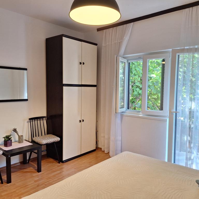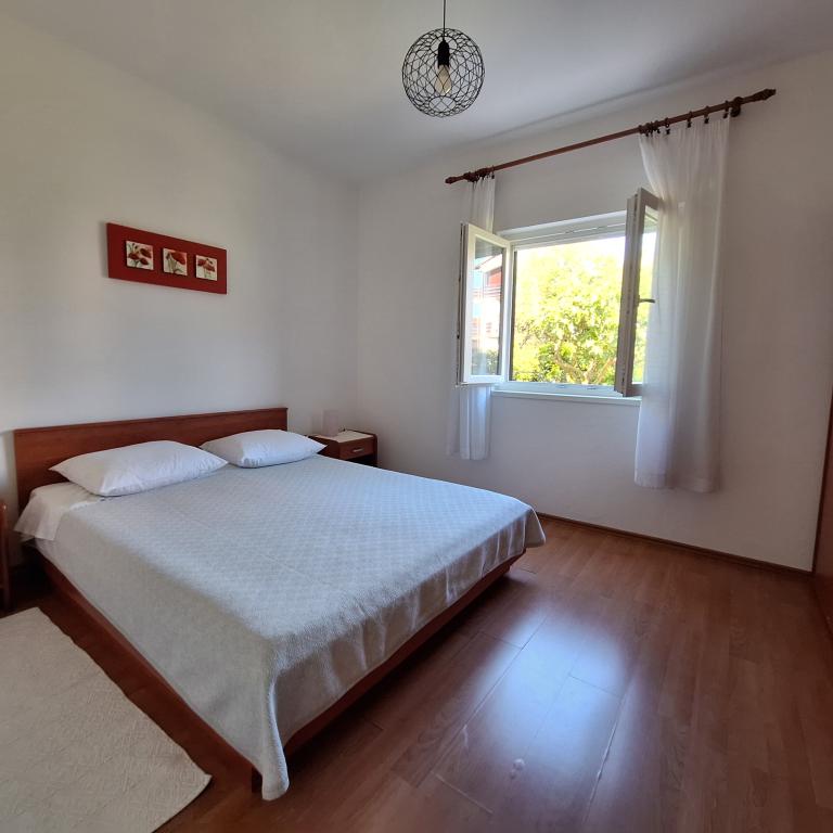 Wir bieten Ihnen die Vermietung eines ganzen Hauses mit 100 m² und einem privaten Garten mit 600 m² an – ein idealer Ort für einen entspannten und ruhigen Urlaub! Vorteile: absolute Privatsphäre, nur 2 Gehminuten zum Strand, großer Garten voller Schatten und Grün, genießen Sie es auf der Terrasse oder im Garten mit Grill, gesicherter Parkplatz für Ihr Auto. Hier finden Sie die perfekte Ecke zum Entspannen und Genießen der Natur, fernab vom Lärm der Stadt. Das Haus besteht aus 2 Schlafzimmern, einem großen Wohnzimmer, einer Küche mit Essbereich und einem Badezimmer. Entfernungen: Zadar – 23 km, Biograd – 4 km, Šibenik – 50 km. In der Nähe von Nationalparks: Krka, Kornati, Paklenica.