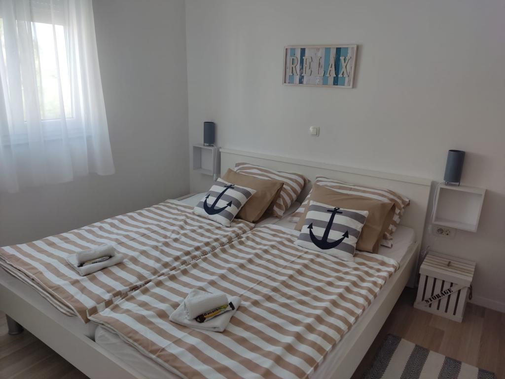 Willkommen im Maris Relax Apartment! Komfortable Wohnung, eingerichtet im maritimen Stil, in Turanj, an der Grenze zu St. Philip und St. James und nur 80 Schritte vom schönen Kiesstrand und dem kristallklaren Meer entfernt. Die Ausstattung der Wohnung bietet Ihnen alles, was Sie für einen unbeschwerten und erholsamen Urlaub benötigen und weitere notwendige Orte (Geschäft, Geldautomat, Post, Restaurants etc.) befinden sich 5 Gehminuten von der Wohnung entfernt. Die umliegenden Städte und Städte bieten kulturelle und die Inseln wunderschöne Naturschönheiten! Alles, was Sie tun müssen, ist sich zu entspannen und Ihren Körper und Ihre Seele auszuruhen!