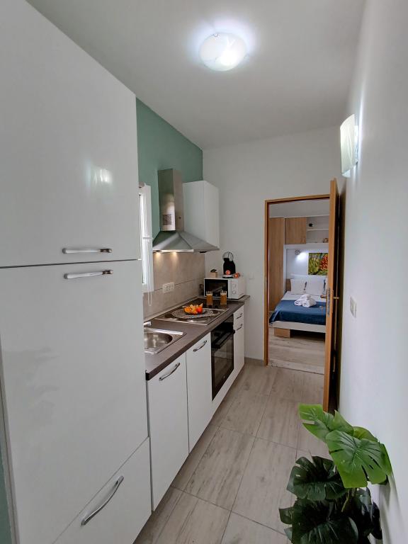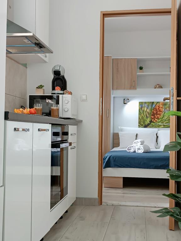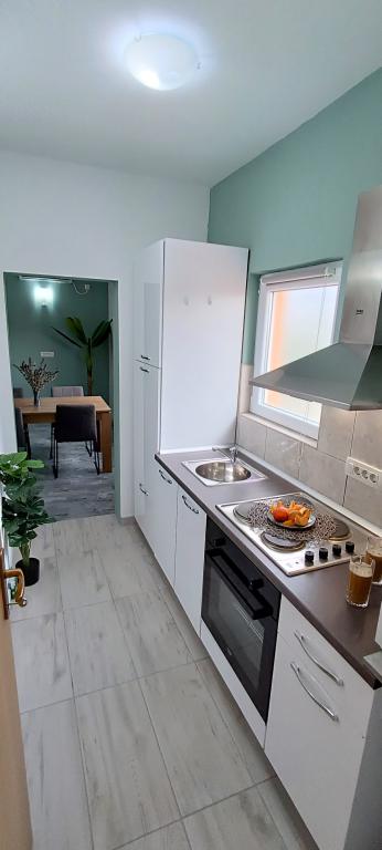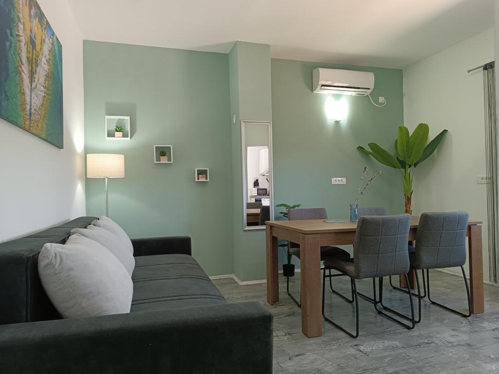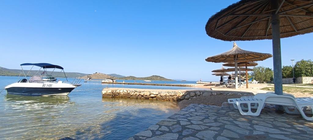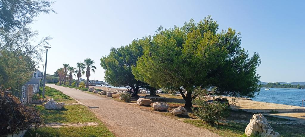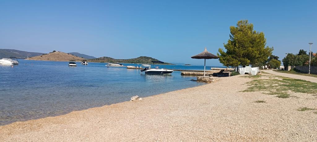 Das Apartment Pine Hill befindet sich in einer ruhigen, neuen Siedlung in Turanj, die bis vor wenigen Jahren fast isoliert war. Heute bietet die Siedlung eine angenehme und sichere Atmosphäre, mit öffentlicher Beleuchtung, die zum Wohlfühlen beiträgt. Das Apartment befindet sich im ersten Stock des Hauses, verfügt über einen eigenen Eingang und bietet einen wunderschönen Blick auf das Meer und den Sonnenaufgang. Es ist für 2+2 Personen geeignet und verfügt über ein Schlafzimmer und ein Zustellbett im Wohnzimmer. Die Küche ist komplett ausgestattet und der Balkon lädt zum Morgenkaffee ein. Der Strand ist nur 300 m entfernt, in einer ruhigen Gegend ohne Verkehr. Rad- und Wanderwege verlaufen in der Nähe. Kostenlose Parkplätze und superschnelles Glasfaser-Internet stehen zur Verfügung. Lage: 6 km von Biograd, 23 km von Zadar und in der Nähe der berühmten Liebesinsel. Nutzen Sie Ihre Freizeit im Hochsommer und verbringen Sie Ihren Urlaub in einer sonnigen, neuen Siedlung, ideal zum Entspannen!