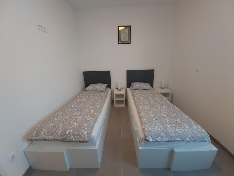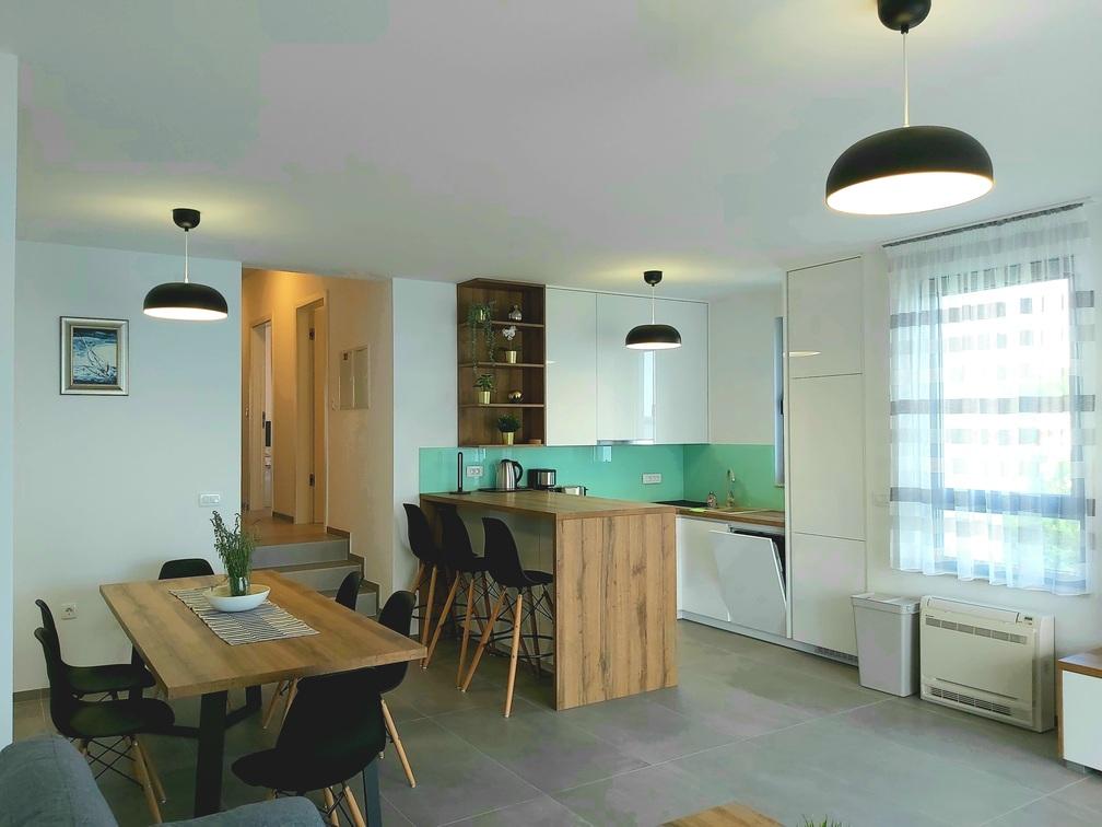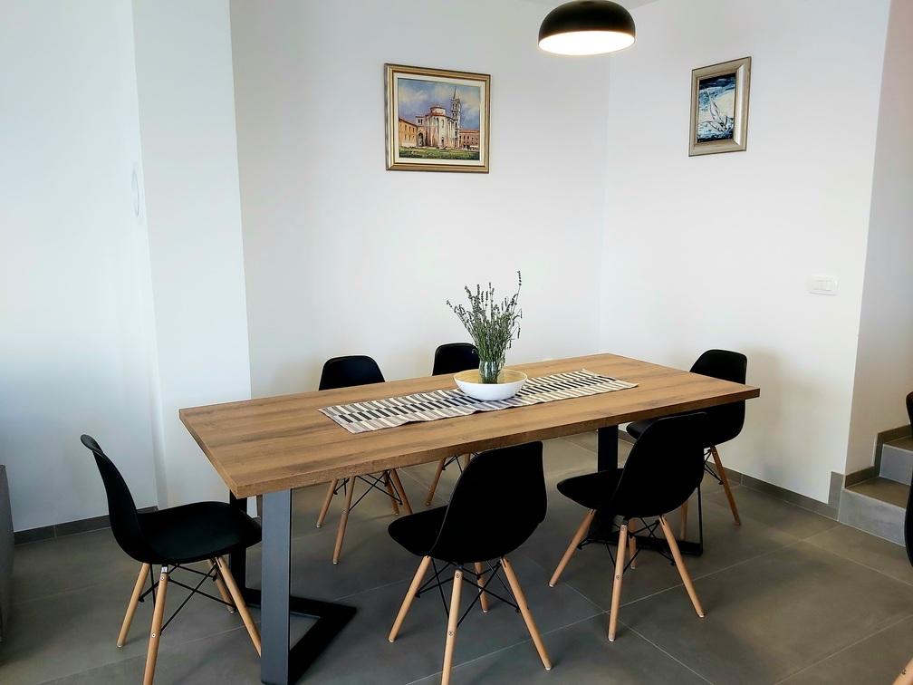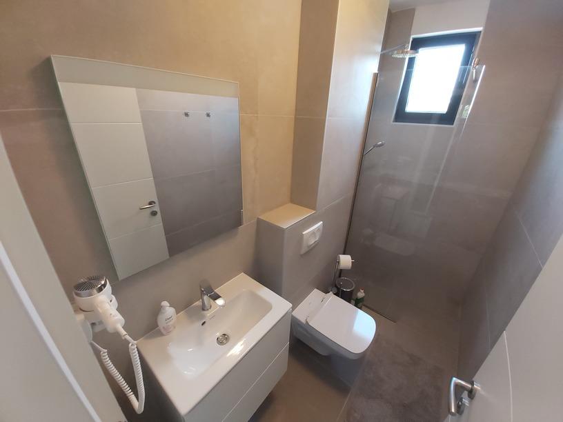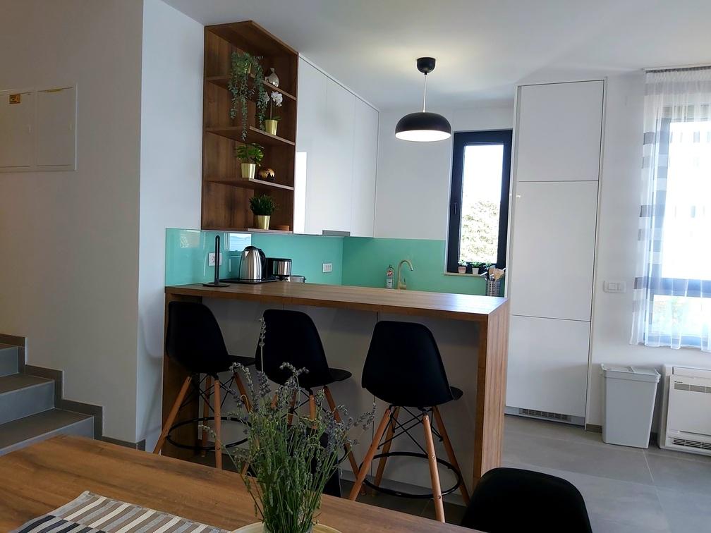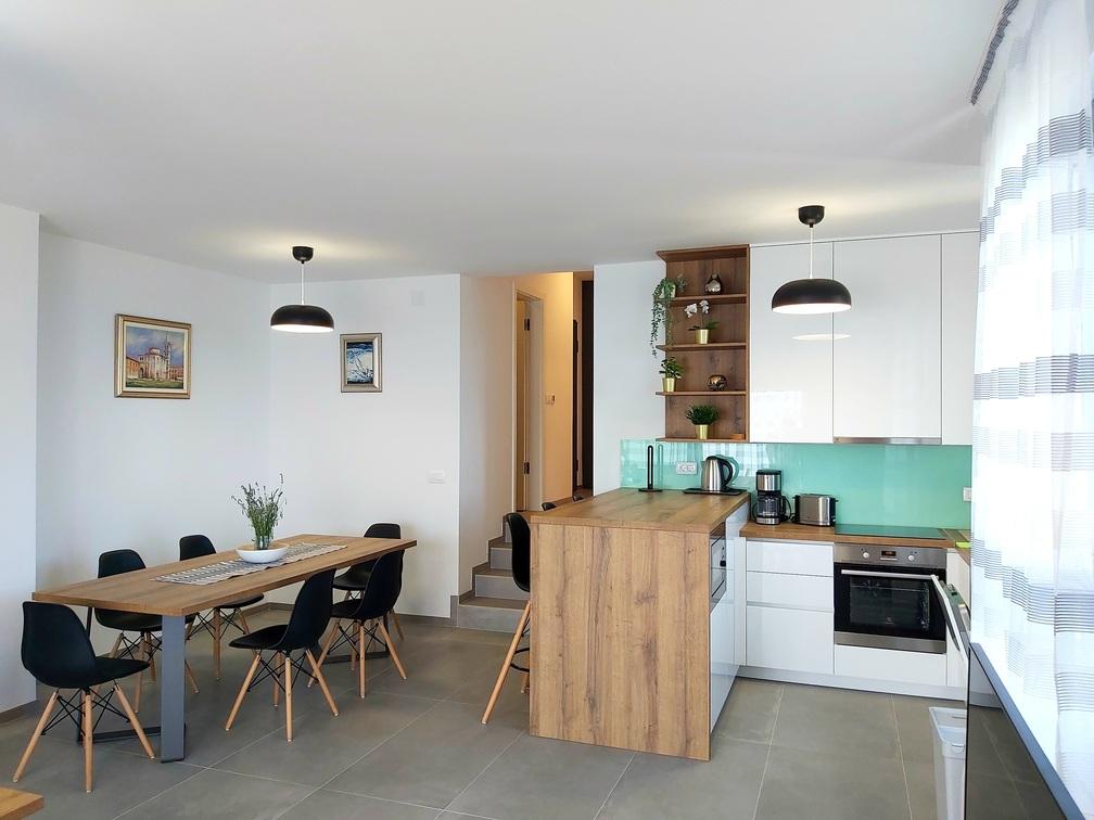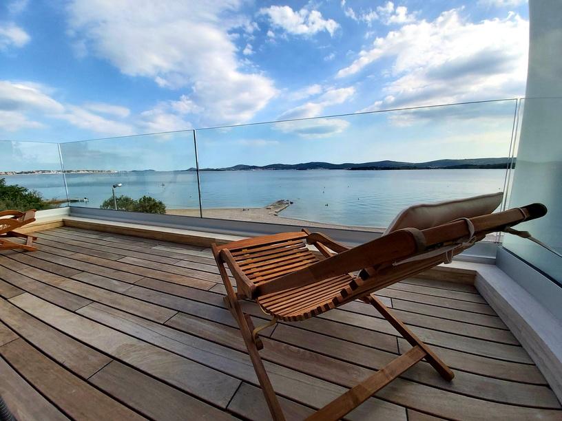 Dieses moderne, sonnendurchflutete Apartment bietet eine ruhige Wohnatmosphäre mit schnellem und einfachem Zugang zu Turanj, Biograd na Moru und Zadar. Bewundern Sie die frische, moderne Landschaftsgestaltung des offenen Wohnraums und genießen Sie die friedliche Umgebung von der charmanten Terrasse. Die Wohnung befindet sich im zweiten Stock mit einer Gesamtfläche von 81,30 m2. Es besteht aus einer modernen Küchenküche, die komplett mit Geräten und Geräten ausgestattet ist, Esszimmer, Wohnzimmer, Flur, zwei Badezimmern mit Duschen und drei Schlafzimmern mit Doppelbetten, Einbauschränken und Safe. Die Terrasse von 17,20 m2 bietet einen Blick auf den Zadar-Kanal und den Strand, der sich direkt unter der Wohnung befindet. Das Nordzimmer hat einen Balkon von 5,40 m2. Neben der Wohnung befindet sich ein komplett eingezäunter Parkplatz mit einer Pergola.