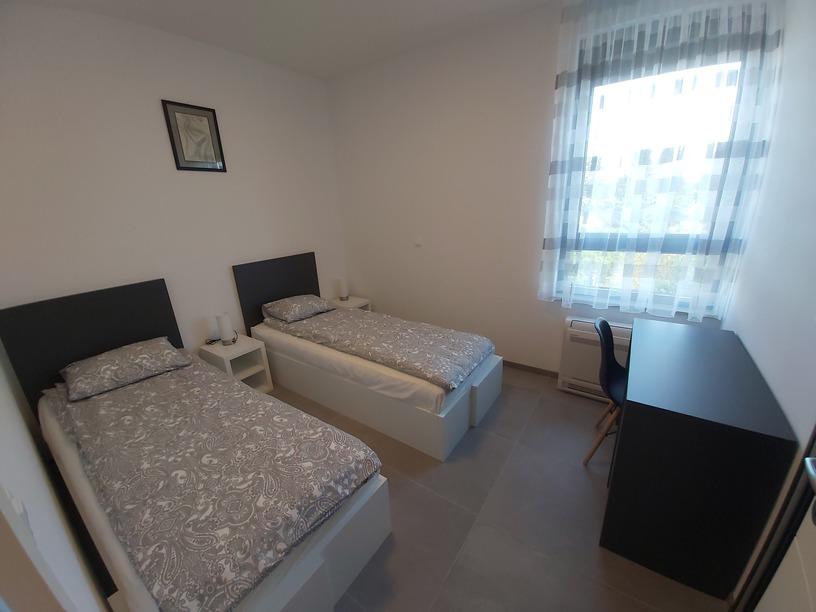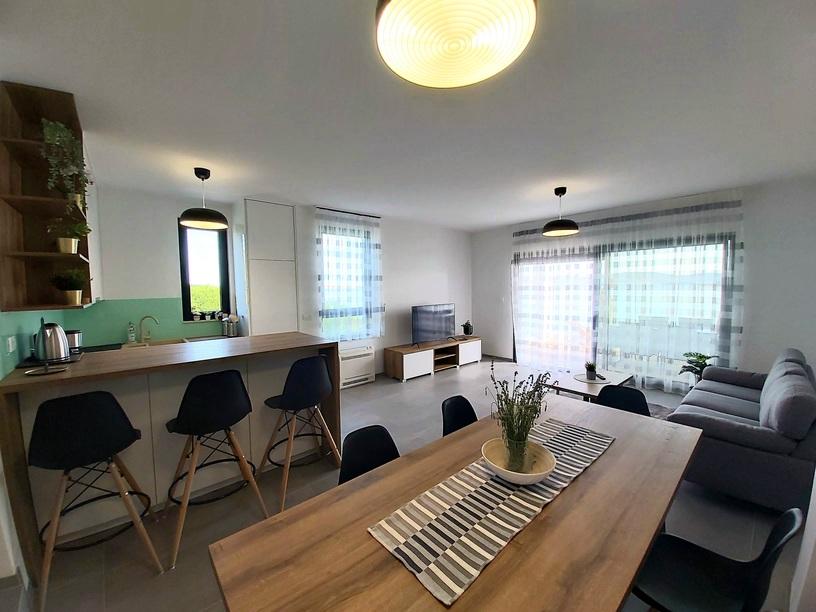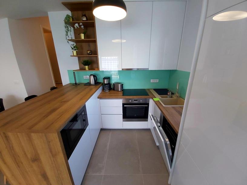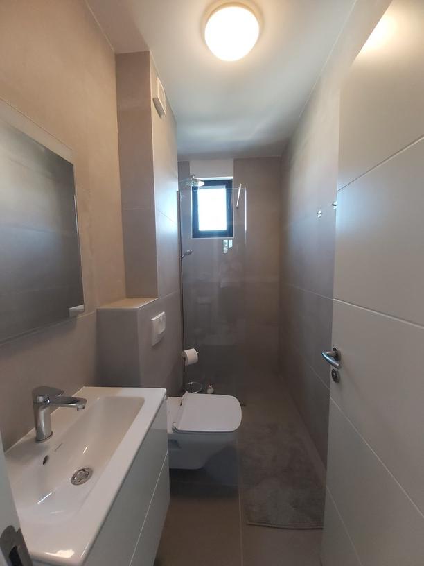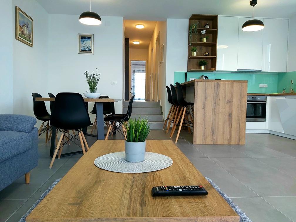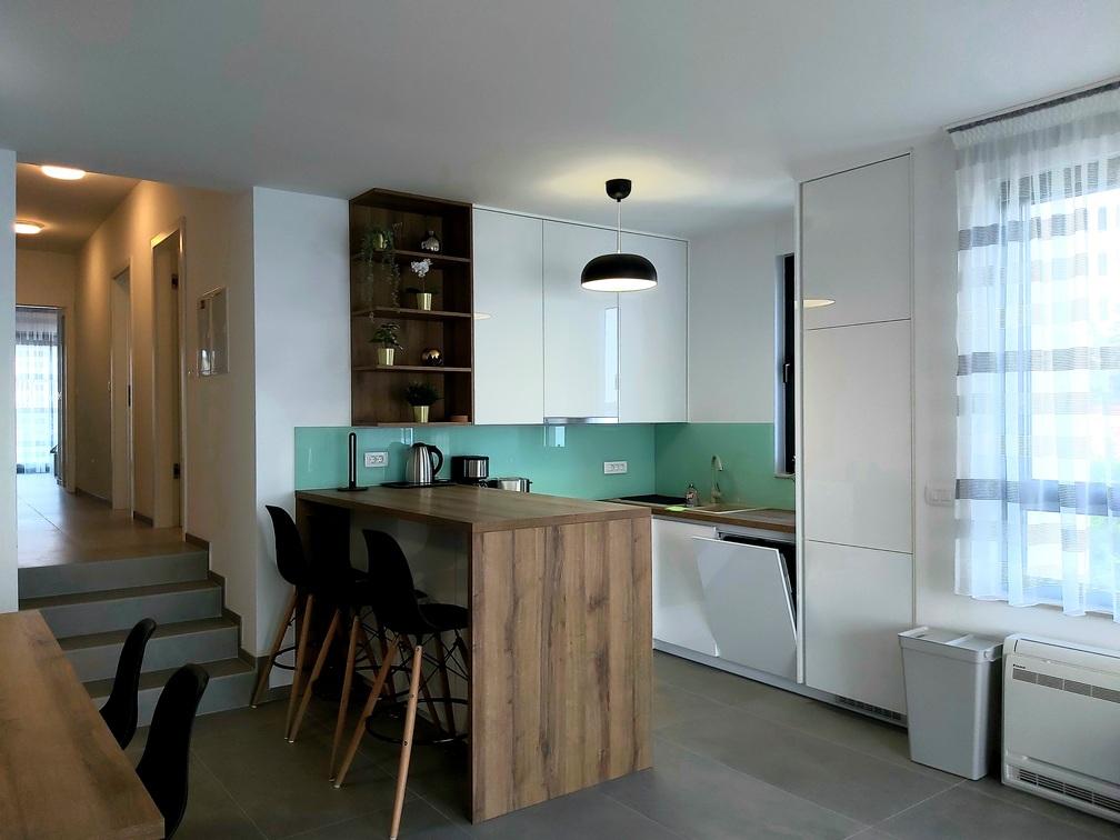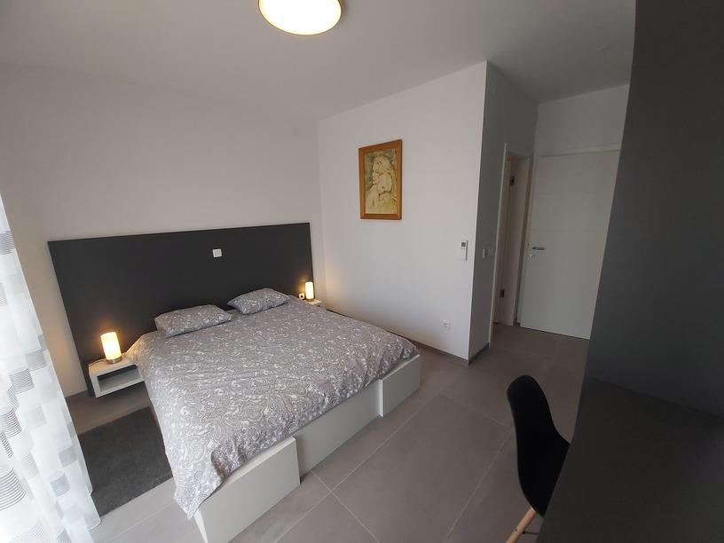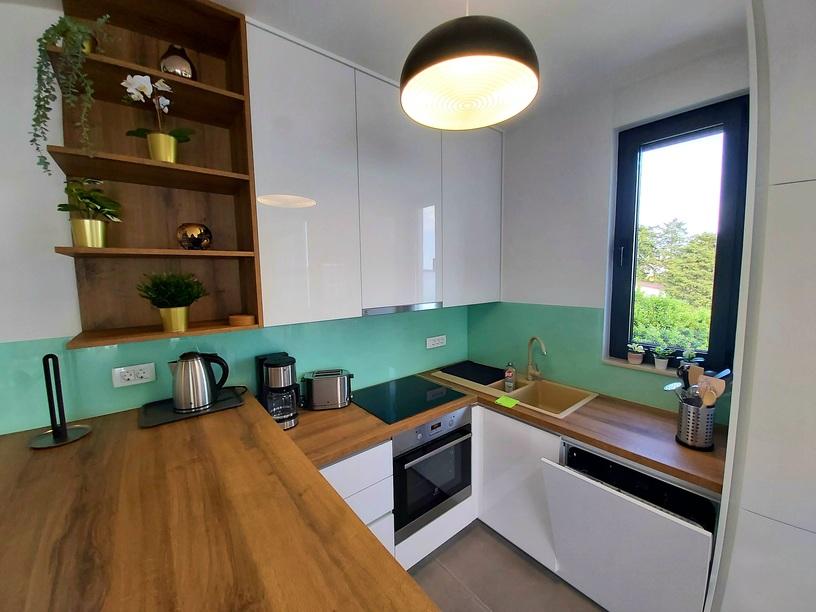 Dieses moderne, sonnendurchflutete Apartment bietet eine ruhige Wohnatmosphäre mit schnellem und einfachem Zugang zu Turanj, Biograd na Moru und Zadar. Bewundern Sie die frische, moderne Landschaftsgestaltung des offenen Wohnraums und genießen Sie die friedliche Umgebung von der charmanten Terrasse. Die Wohnung befindet sich im zweiten Stock mit einer Gesamtfläche von 81,30 m2. Es besteht aus einer modernen Küchenküche, die komplett mit Geräten und Geräten ausgestattet ist, Esszimmer, Wohnzimmer, Flur, zwei Badezimmern mit Duschen und drei Schlafzimmern mit Doppelbetten, Einbauschränken und Safe. Die Terrasse von 17,20 m2 bietet einen Blick auf den Zadar-Kanal und den Strand, der sich direkt unter der Wohnung befindet. Das Nordzimmer hat einen Balkon von 5,40 m2. Neben der Wohnung befindet sich ein komplett eingezäunter Parkplatz mit einer Pergola.