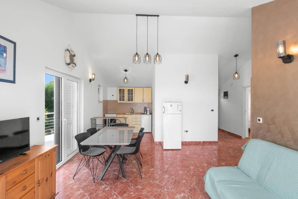 Die Apartments liegen direkt am Meer in einer ruhigen und freundlichen ländlichen Umgebung. Jede Wohnung verfügt über eine große Terrasse mit Meerblick. Sie sind von einem angelegten mediterranen Garten umgeben, der zum Spielen für Kinder geeignet ist. Im Garten stehen Sonnenliegen und ein gemeinschaftlicher Grill zur Verfügung. Jede Wohnung verfügt über 2 Badezimmer. In der Nähe, nur 5 Gehminuten entfernt, liegt das Zentrum, wo es einen Markt mit Produkten von Bauernhöfen aus der Umgebung sowie Geschäfte und Restaurants gibt. Die medizinische Notfallhilfe steht rund um die Uhr zur Verfügung. Der Strand direkt vor der Wohnung ist ein Kieselstrand, in der Nähe gibt es mehrere Strände, darunter auch einen Sandstrand. Anreise mit dem Auto: Die Autobahn führt direkt zum Fährhafen Gaženica. Danach besteigen Sie die Fähre nach Preko. Im Sommer verkehren die Linien häufig und mindestens stündlich. Vom Fährhafen Preko nehmen Sie die Hauptstraße der Insel, um in die 10 km entfernte Stadt Ugljan zu gelangen. Anreise mit dem Flugzeug: Vom Flughafen Zadar mit dem Bus oder Taxi in 15 Minuten. Sie kommen direkt am Fährhafen von Gaženica an, wo Sie die Fähre nach Preko besteigen.