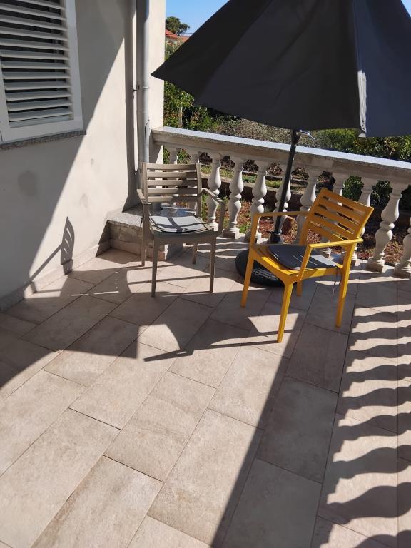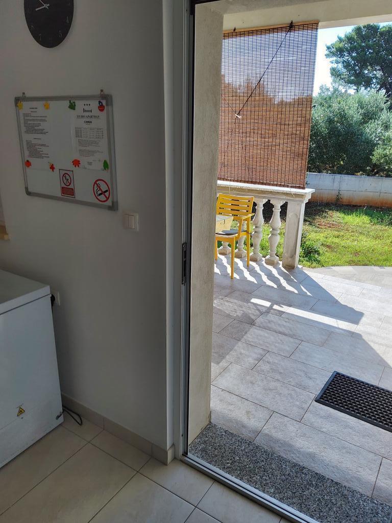 Ideale Unterkunft für zwei Erwachsene. Das Apartment Laguna befindet sich im Erdgeschoss eines Einfamilienhauses mit großem Garten. Die Wohnfläche beträgt 35 m², die Terrasse 15 m². Dank der Nordostausrichtung liegt sie die meiste Zeit im Schatten. Die Anlage besteht aus einem Apartment und einem separaten Apartment für den Gastgeber. Das Apartment befindet sich im Erdgeschoss, bietet Zugang zu Terrasse und Garten und hat Meerblick. Es ist neuwertig und bietet komfortable und bequeme Unterkunft an heißen Sommertagen. Die Ausstattung lässt keine Wünsche offen. Gepflasterte Parkplätze stehen ebenfalls zur Verfügung. Am Strand befinden sich ein Café, eine Bar und ein Beachvolleyballfeld. Der Strand ist nur wenige Schritte vom Apartment entfernt. Geschäfte, ein Supermarkt und alles Weitere finden Sie im Zentrum. Dieses erreichen Sie mit dem Auto in 2 Minuten, mit dem Fahrrad ist es jedoch noch bequemer.