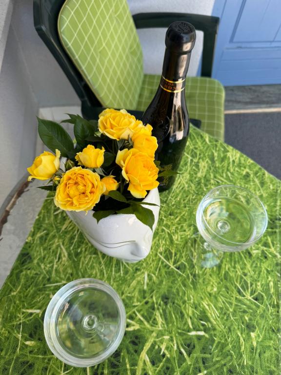Gegen Aufpreis ist ein Transport zum Flughafen Portorož oder Pula möglich. 300 Meter von der Wohnung entfernt befindet sich eine Touristenzughaltestelle zur Lagune Stella Maris mit Kinderspielplätzen und Tennisplätzen, die 2 km von der Wohnung entfernt liegt. Der Aquapark Istralandia ist 17 km, der Flughafen Portorož 15 km und der Flughafen Pula 90 km entfernt.