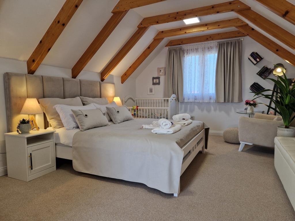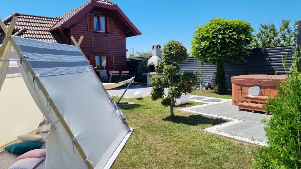 Das ca. 60 m2 große Ferienhaus aus Holz liegt 4 km vom Stadtzentrum von Varaždin entfernt. Es liegt am Ende einer ruhigen Straße, umgeben von Grün. Das Haus besteht aus einem geräumigen und schön eingerichteten Wohnzimmer, einer Küche, einem Badezimmer und einer Terrasse im Erdgeschoss und einem Schlafzimmer und einer Terrasse im ersten Stock. Den Gästen steht außerdem ein Garten mit Außenterrasse, Platz zum Grillen, für geselliges Beisammensein, Whirlpool und Unterhaltung im Freien zur Verfügung. Kostenloses WLAN, kostenlose Parkplätze im Hof, Grill. Der Zutritt zur Anlage erfolgt personalisiert (diskret) über einen Schlüsselsafe und ist jederzeit innerhalb der 24 Stunden möglich. Den Safecode erhalten die Gäste, wenn das Haus am Morgen ihrer Ankunft empfangsbereit ist.