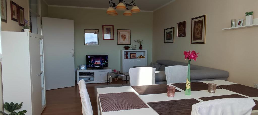 Willkommen im Apartment „Florem“, das sich in der Nähe des ValMod-Zentrums in der R.-Boškovića-Straße 20 in einem Gebäude mit Aufzug befindet. Unser klimatisiertes 60 m² großes Apartment besteht aus einer neu renovierten Küche, die mit allen notwendigen Geräten und Geschirr ausgestattet ist, einer Speisekammer, einem geräumigen Wohnzimmer, einem Badezimmer mit Badewanne und Waschmaschine sowie einem Schlafzimmer mit einem Doppelbett und einem Etagenbett Bett. Das Ecksofa im Wohnzimmer kann auch zu einem Bett ausgezogen werden. Vor dem Gebäude gibt es kostenlose Parkplätze und einen Kinderspielplatz im Grünen. In unmittelbarer Nähe gibt es mehrere Geschäfte, eine Bank, eine Tankstelle, ein Café, eine Kirche... Sie können zu Fuß in die Innenstadt oder zur Promenade an der Drau gehen, wo Sie in den Sommermonaten die Schwimmbäder genießen können. Entspannen Sie sich nach dem Ausgehen mit einem Fernseher, kostenfreiem WLAN und einigen Büchern, Spielzeugen und Brettspielen oder mit Blick auf den Sonnenuntergang. Der Balkon bietet einen Blick auf die Dächer der Altstadt, aber auch auf das Grün des Drauwaldes, Ivanščica und Ravna Gora. Wir wünschen Ihnen einen angenehmen Aufenthalt.