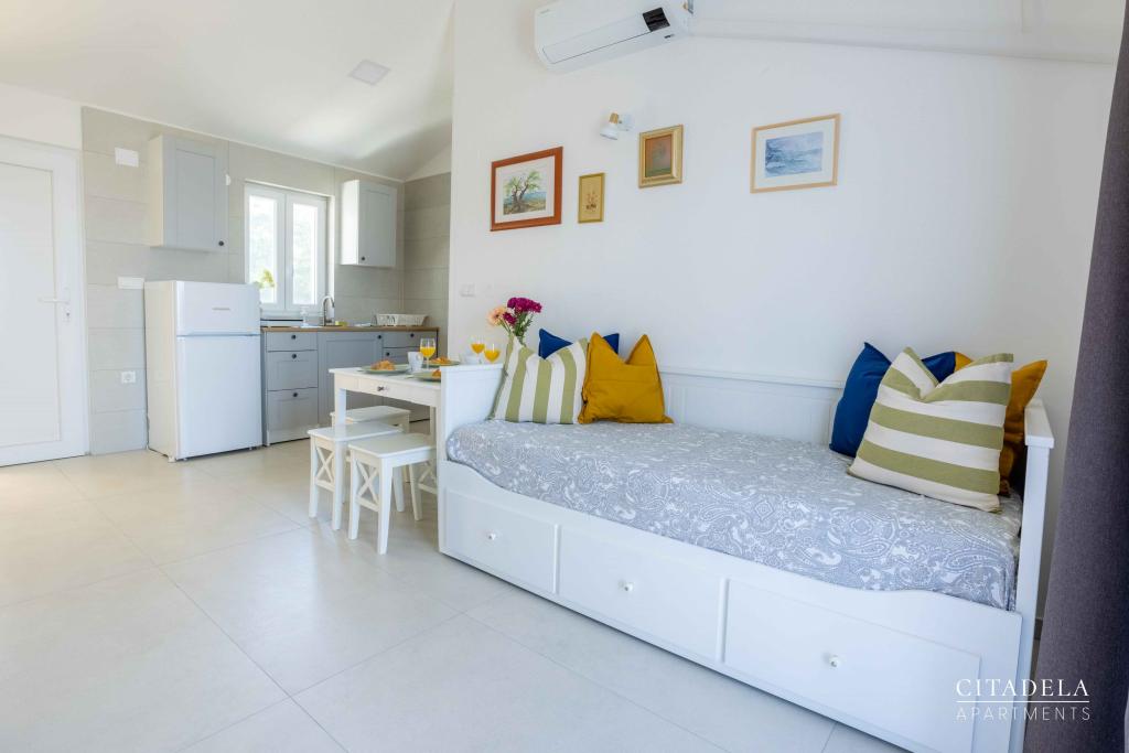 Citadela Veli Lošinj besteht aus zwei Studio-Apartments (2+0) und sechs Apartments (2+1). Jedes Apartment verfügt über einen eigenen Eingang, eine eigene Terrasse, kostenlose Parkplätze vor Ort, WLAN, Satellitenfernsehen und eine ausgestattete Küchenzeile. Eine herzliche Begrüßung mit einer kleinen Erfrischung ist bei der Ankunft obligatorisch. Als Gastgeber führen wir Sie zu allen Einrichtungen und Attraktionen der Insel Lošinj und sorgen dafür, dass Sie einen hochwertigen und unbeschwerten Urlaub auf der Insel Lošinj verbringen. !!!!!!!!!!!!!!!!!!!!!!!!! AB DER SAISON 2025 HABEN WIR UNSER ANGEBOT UM EINEN FRÜHSTÜCKSZUBEREITUNGSSERVICE ERWEITERT !!!!!!!!!!!!!!!!!!!!!!!!!!!!!!!!!!!!!!!!!!!!!! Das Frühstück wird à la carte serviert, wobei jeder Gast sein Frühstück für den nächsten Tag selbst auswählt. Das Frühstück wird in der Unterkunft berechnet. Der Gast wählt Art und Preis des Frühstücks.