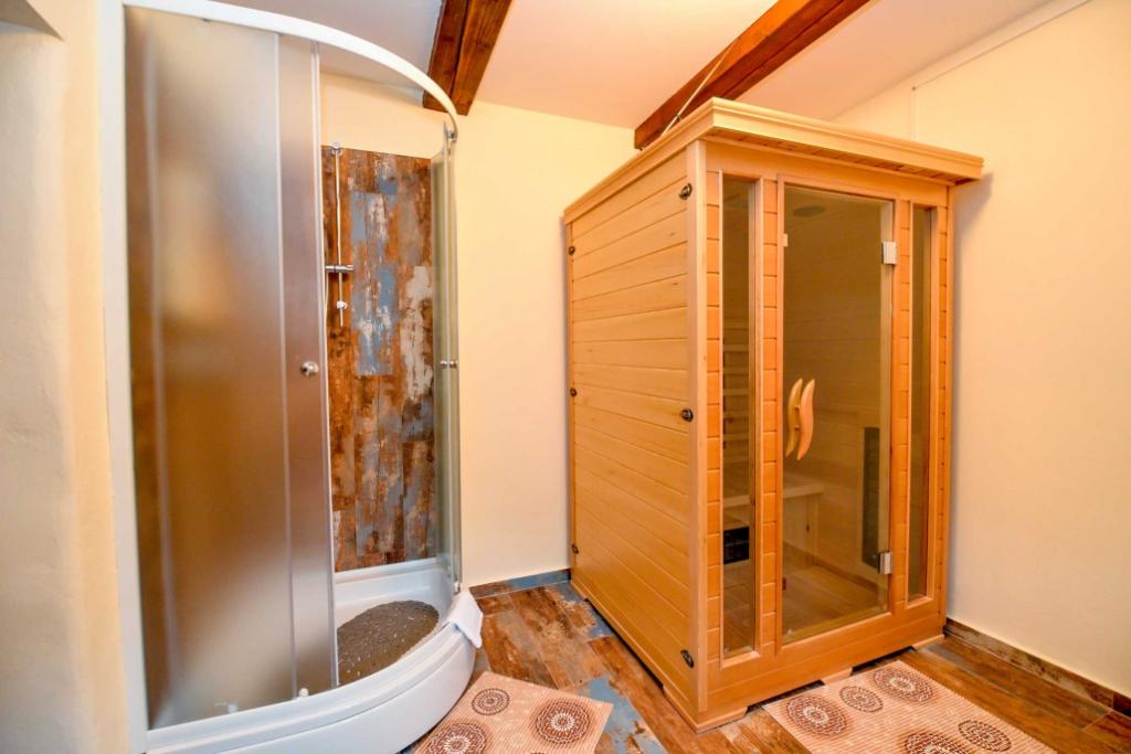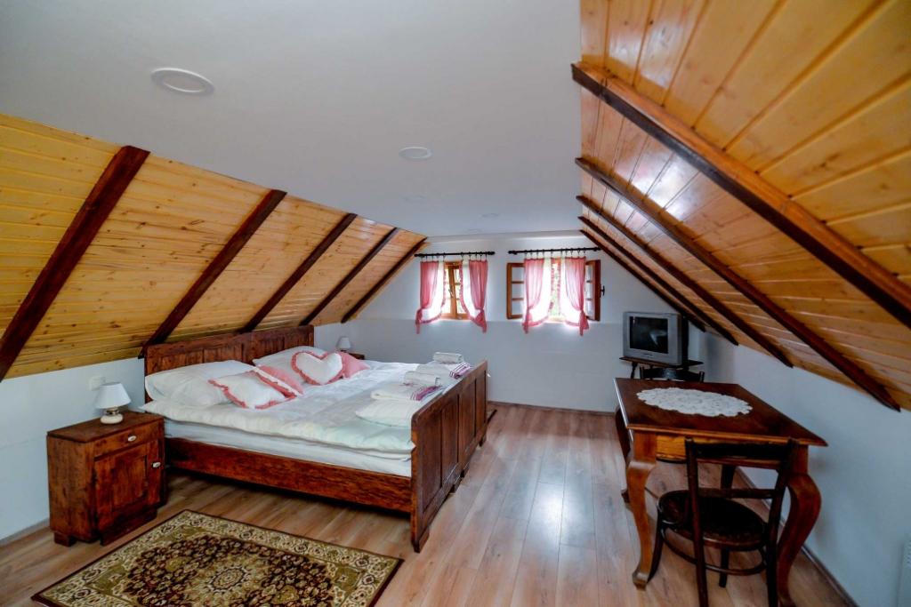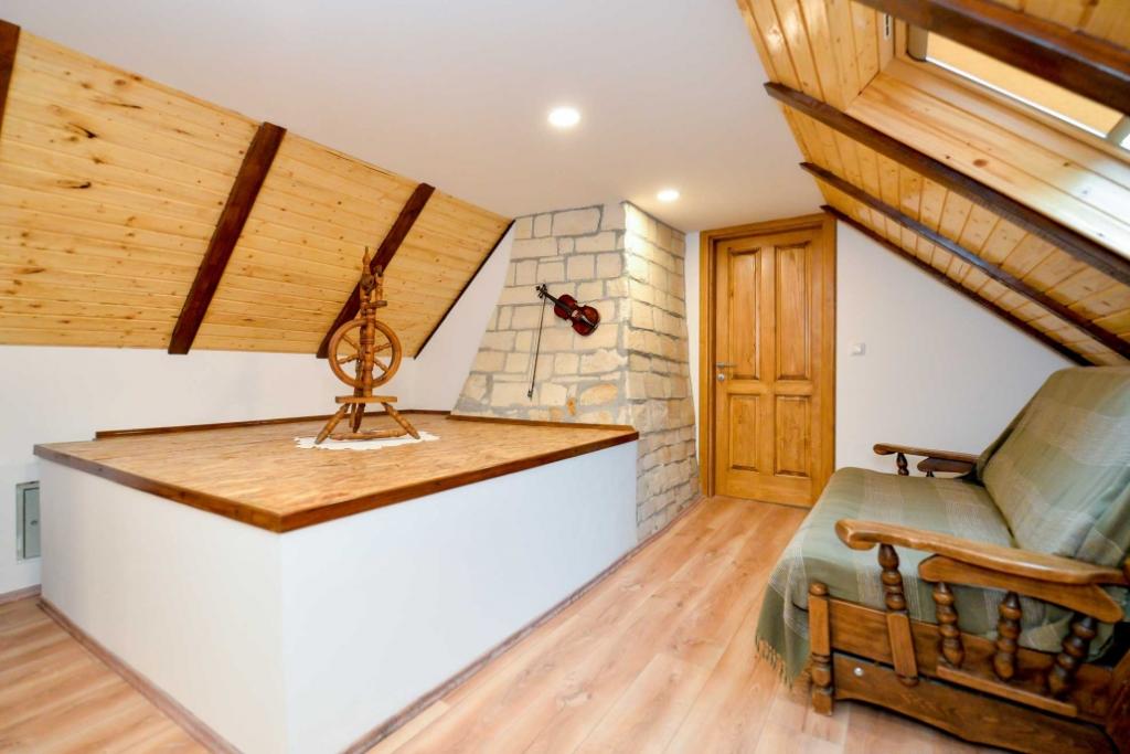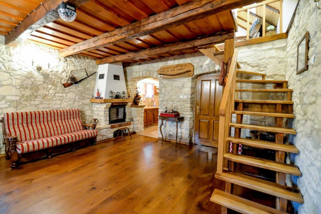 Zu vermieten ist ein einheimisches Haus aus dem Jahr 1778 in Hrvatsko zagorje (Gespanschaft Varaždin), Vinica Breg 97 (2 km von der Straße Varaždin - Maribor entfernt). Das Haus wurde kürzlich renoviert und die traditionellen Baumaterialien (Vinicite-Stein und Holz) wurden beibehalten. Im Erdgeschoss des Hauses gibt es ein großes Wohnzimmer mit Esszimmer, eine Küche, ein Badezimmer mit Toilette, eine Sauna und einen Flur, während sich im Dachgeschoss ein großes Schlafzimmer und ein geräumiger Flur (91 m2) befinden in Summe). Das Haus verfügt über ein Doppelbett und ein Zustellbett und ist daher für die Unterbringung einer Familie geeignet. Im Hof gibt es einen gesicherten Parkplatz und einen überdachten Grill mit kleiner Terrasse. In der Umgebung des Hauses gibt es wunderschöne Natur, daher ist das Haus ideal als Unterkunft für Naturliebhaber, Jäger (in der Nähe von LD Zelendvor) und Fischer (in der Nähe der Drau und des Vinica-Teichs). Nicht weit vom Haus entfernt befinden sich das berühmte Opeka-Arboretum, die Vindija-Höhle und andere kulturelle und heilige Objekte.
