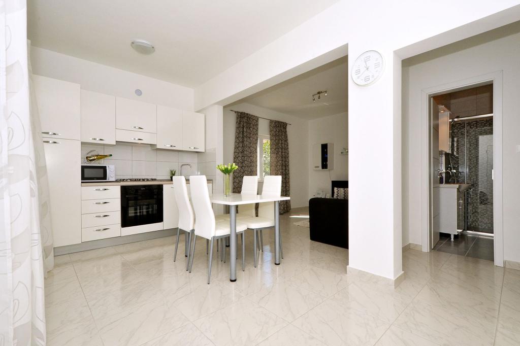 Apartments Nina bietet vier neue Wohnungen 20 Meter vom Meer entfernt. In der Nähe sind die Strände und Geschäfte, und das Zentrum ist nur wenige hundert Meter. Ideal für Familien und für Kinder. Haustiere sind ebenfalls willkommen.