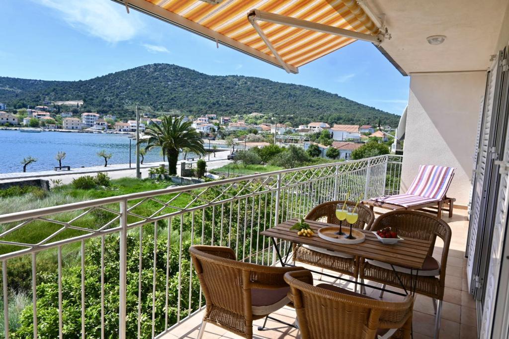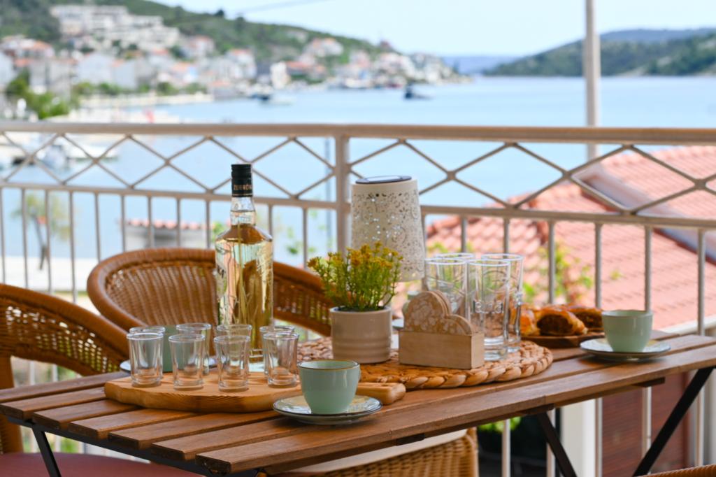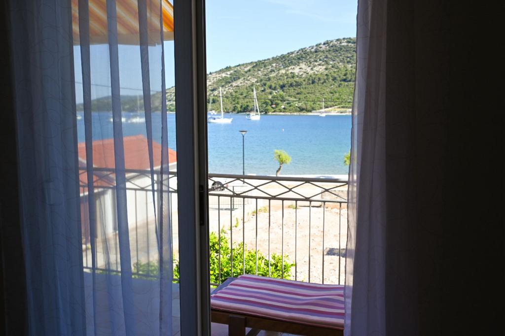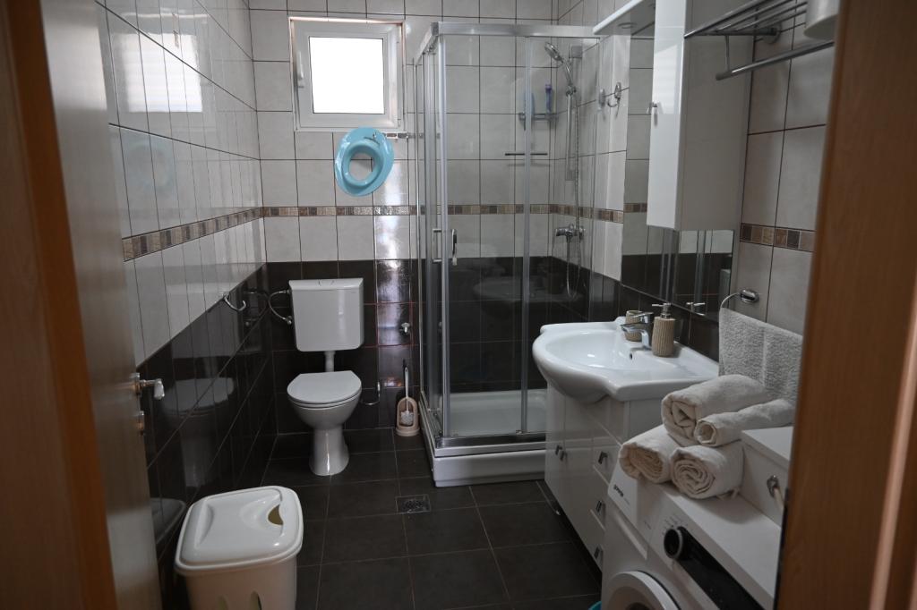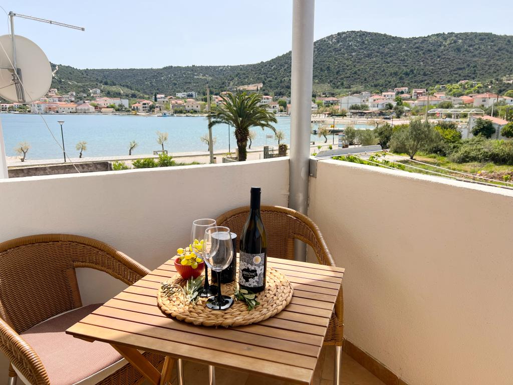 Das Apartment Leonora liegt direkt am Strand, in erster Reihe zum Meer, mitten im Zentrum eines kleinen Fischerdorfes. Es befindet sich im ersten Stock eines Einfamilienhauses mit großem Garten. Vor dem Haus befindet sich ein gepflegter Kiesstrand, der ideal für Familien mit Kindern ist. Die Wohnung ist klimatisiert, verfügt über einen eigenen Parkplatz und die Möglichkeit, einen Grill und eine Solardusche vor dem Haus zu nutzen. Es besteht aus zwei Schlafzimmern, einem großen Wohnzimmer mit einem Ecksofa, das geöffnet und zum Schlafen genutzt werden kann, einer geräumigen Küche mit Esszimmer und einem Badezimmer. Es besteht auch die Möglichkeit, ein Zustellbett sowie nach vorheriger Absprache ein Kinderbett aufzustellen. Auf der Südseite ist es dem Meer zugewandt und die gesamte Länge der Prothese ist mit einer Terrasse überdacht, von der aus Sie einen schönen Blick auf die gesamte Bucht genießen können. Alle notwendigen Einrichtungen sind nicht weiter als 50 Meter vom Haus entfernt (Bäckerei, Cafés, Restaurants, Reisebüro, Geldautomat). Die Wohnung wird je nach Gästen hergerichtet und wir möchten, dass sich jeder Gast wie zu Hause fühlt.