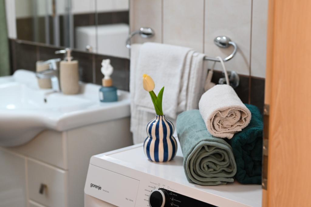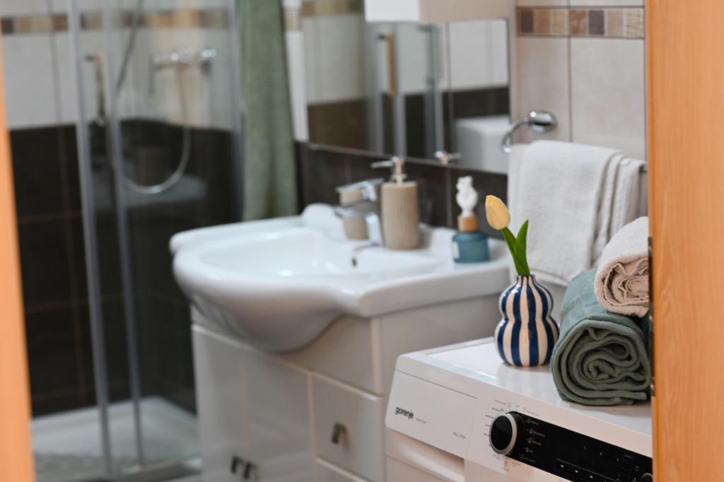 Im Preis inbegriffen sind ein Begrüßungsgetränk sowie die Möglichkeit, ein SUP zu mieten. In Vinišće selbst besteht die Möglichkeit, ein Boot zu mieten und versteckte Sandstrände zu entdecken. Trogir, eine Stadt unter dem Schutz der UNESCO, liegt in der Nähe der Stadt, etwa 20 Kilometer entfernt. Auf Ihren Wunsch können wir Ihnen nahe gelegene Städte empfehlen, die sich hervorragend für Besichtigungen eignen (Primošten, Rogoznica, Nationalpark Krka). Vinišće bietet auch mehrere Radwege, Bergwege und Gebiete zur Erkundung. Es besteht die Möglichkeit, mit den Gastgebern zu angeln und zu tauchen. Die Wohnung ist sehr gut und modern ausgestattet, insbesondere die Küche, die über sämtliches Zubehör verfügt. Im Wohnzimmer gibt es einen großen Smart-TV, auf dem Sie Netflix schauen können.