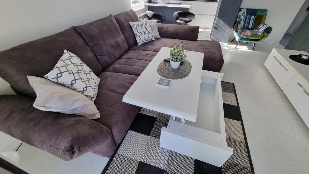 Das exklusive Designer-Apartment Laura Exclusive mit hervorragender Ausstattung und Selbst-Check-in befindet sich in Vinkovci, 41 km vom Museum von Slawonien und 42 km vom Kunstmuseum in Osijek entfernt, in einer Gegend, die sich ideal zum Radfahren eignet. Die Unterkunft bietet kostenlose Fahrräder, eine Terrasse, Stadtblick und kostenfreies WLAN im gesamten Gebäude. Das klimatisierte Apartment verfügt über ein Schlafzimmer, ein Wohnzimmer, eine voll ausgestattete Küche mit Kühlschrank und Kaffeemaschine sowie ein Badezimmer mit Dusche und kostenlosen Pflegeprodukten. Ein Flachbild-Sat-TV und ein Computer sind ebenfalls vorhanden. Die Opus Arena erreichen Sie nach 42 km, das Stadion Gradski vrt nach 40 km.