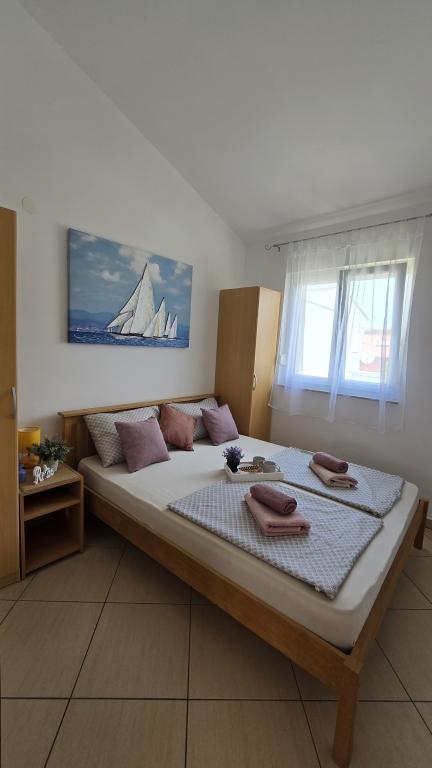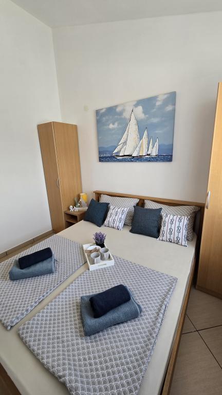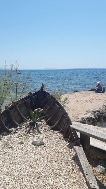 Die Marcela Apartments befinden sich im südlichen Teil der Insel Vir in einer ruhigen Umgebung. Vor der Wohnung befindet sich eine große, weitläufige Wiese, die Ihnen während Ihres Urlaubs Privatsphäre bietet. Von der Wohnung führt ein Weg direkt zum Strand. Die Wohnung im Untergeschoss verfügt über ein Schlafzimmer mit einem bequemen Doppelbett und zwei Zustellbetten. Die obere Wohnung im 1. Stock hat auch ein Zimmer mit einem Doppelbett und zwei Zustellbetten. Beide Wohnungen haben alles, was Sie für einen ruhigen und komfortablen Urlaub brauchen: große Terrasse, Klimaanlage, WLAN, LCD / SMART-TV, Grill, Bettwäsche, Handtücher, Parkplatz, Außendusche. Der für Kinder geeignete Strand ist nur 70 Meter oder zwei Minuten zu Fuß entfernt. Nur wenige Gehminuten entfernt befinden sich ein Geschäft, eine Bäckerei und ein Café direkt am Strand. Das Zentrum von Vir erreichen Sie nach einem 20-minütigen Spaziergang, sodass Sie in Ihrem Urlaub kein Auto benötigen. Die Wohnung ist tierfreundlich mit dem Hinweis, dass Hunde ordentlich und sozialisiert sein sollten