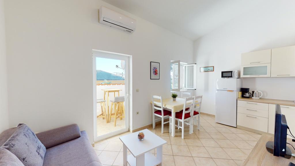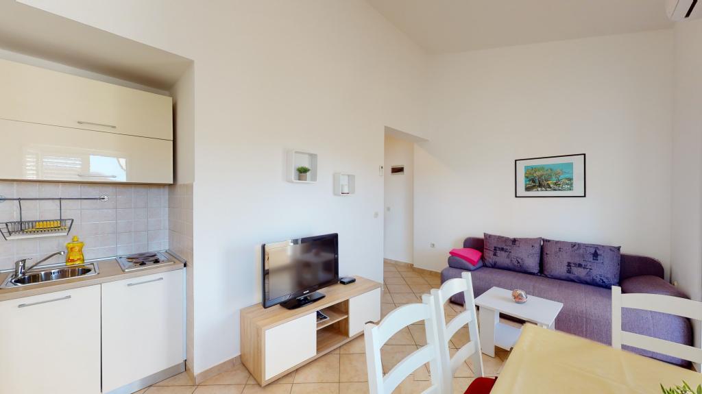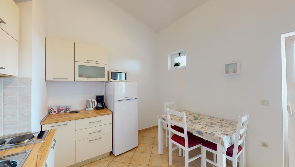 Apartment 3 ***, im 1. Stock mit herrlichem Meerblick. Alles für einen angenehmen Aufenthalt befindet sich in einem Umkreis von 250 m: Strand, Stadtzentrum, Supermarkt und Restaurants. Im Hof gibt es einen Grill und eine zusätzliche, grüne Terrasse. Die Unterkunft liegt in ruhiger Umgebung.