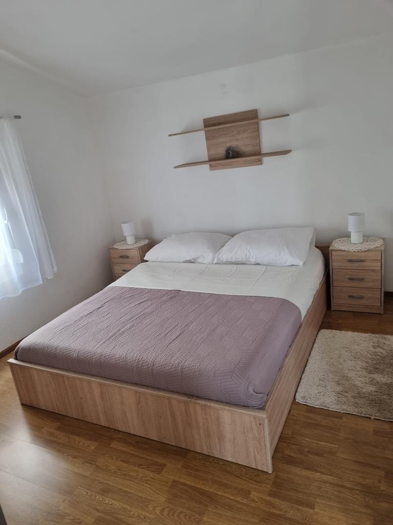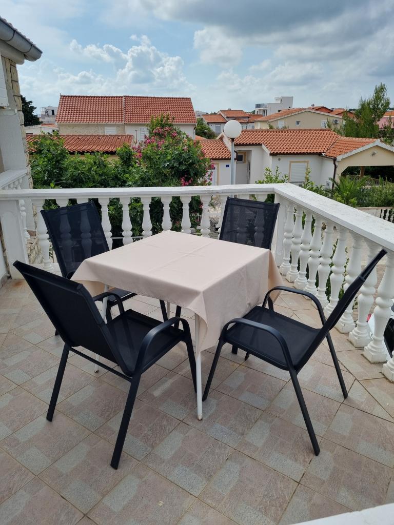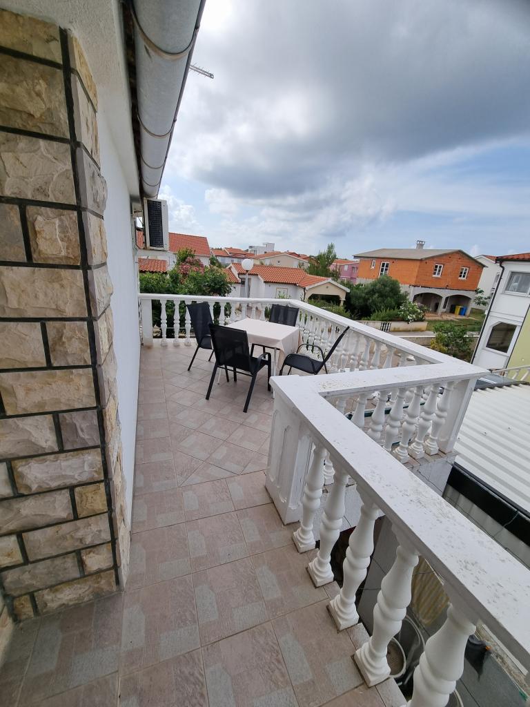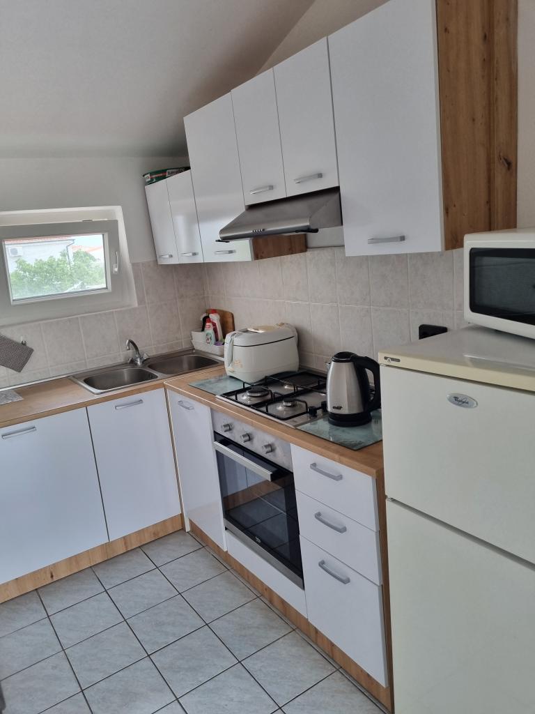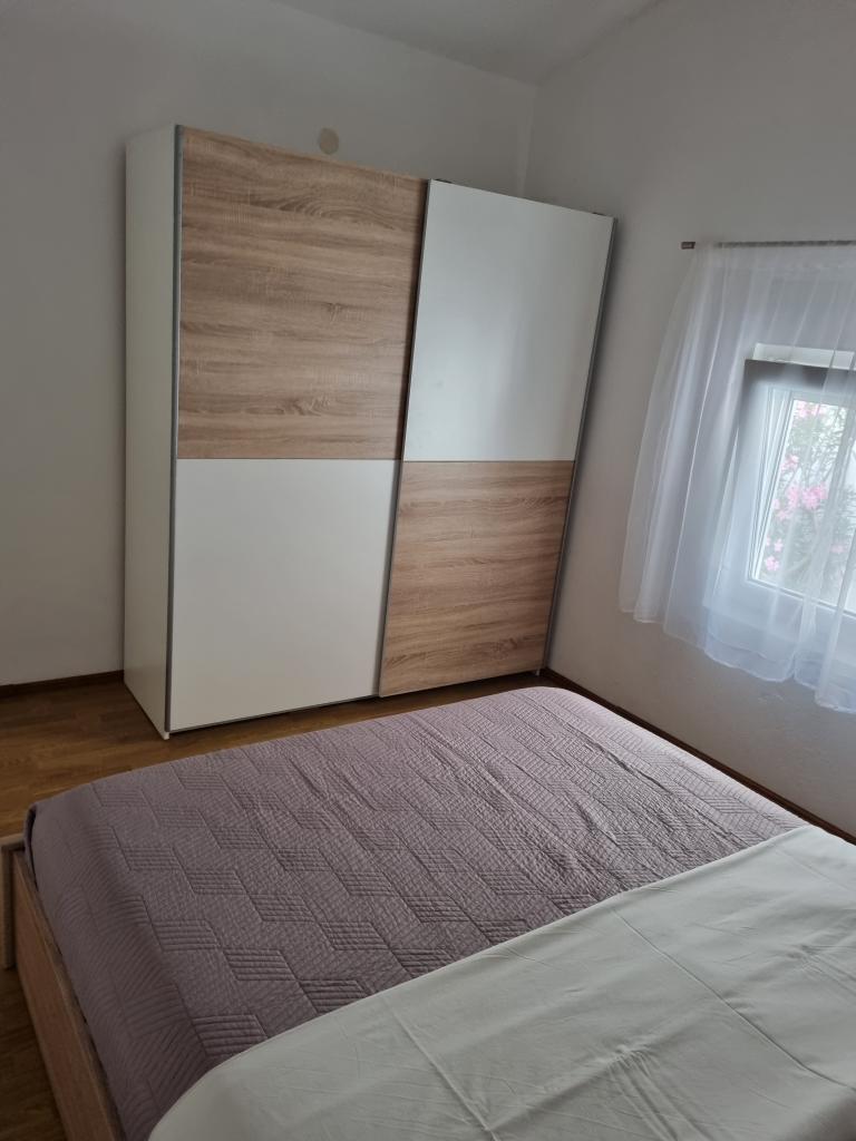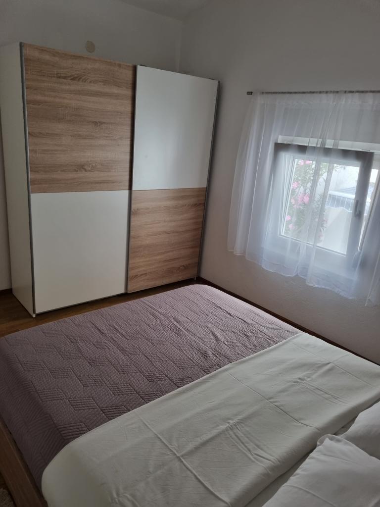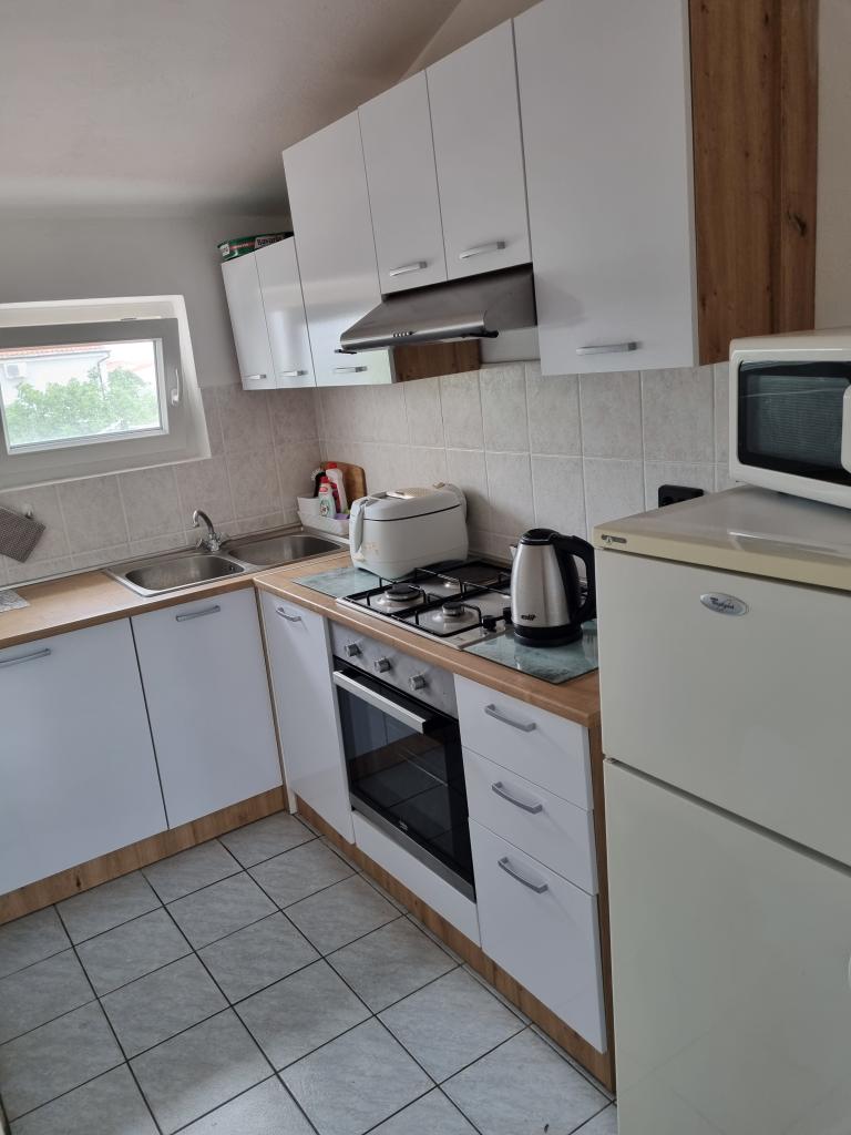 Luxuriös eingerichtete Wohnung mit sonniger Terrasse, 75m2 im ersten Stock des Hauses mit separatem Eingang. Schlafzimmer (2 Personen), Küche, Badezimmer, Flur, Esszimmer mit Wohnzimmer mit Ecksofa (2 Personen), Zimmer mit 2 separaten Betten, sonnige Terrasse, geeignet zum Essen und für geselliges Beisammensein mit der Familie. TV, IPTV, WLAN, Klimaanlage, Kühlschrank, Mikrowelle, Fritteuse, Wasserkocher, Föhn, Grillnutzung. Parkplatz für ein Fahrzeug im Hof. Eine friedliche und ruhige Straße führt zum Meer bzw. zum Strand, von wo aus man in 3 Minuten zu Fuß (Kieselstein) oder in 5 Minuten zum Sandstrand gelangt. Restaurant auf der Straße. Cafés, Pizzerien und Restaurants befinden sich entlang der 5 km langen Promenade am Meer, die sich zum Radfahren eignet. Markt 5 Minuten entfernt. Am Strand gibt es ein Angebot zum Verleih von Tretbooten, Stand-Up-Paddle-Boards, Elektrorollern, Fahrrädern, Quads, Kajaks sowie organisierte Inselrundfahrten mit dem Boot. Kurtaxe ist im Übernachtungspreis inbegriffen!