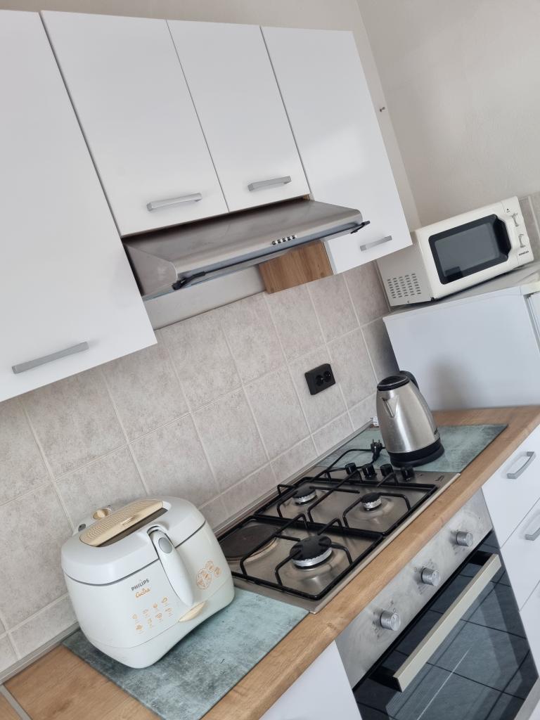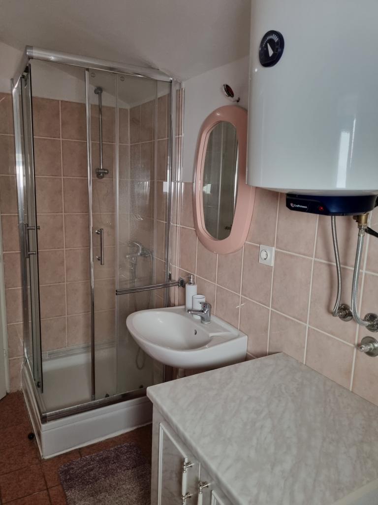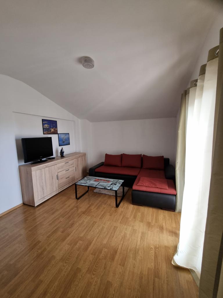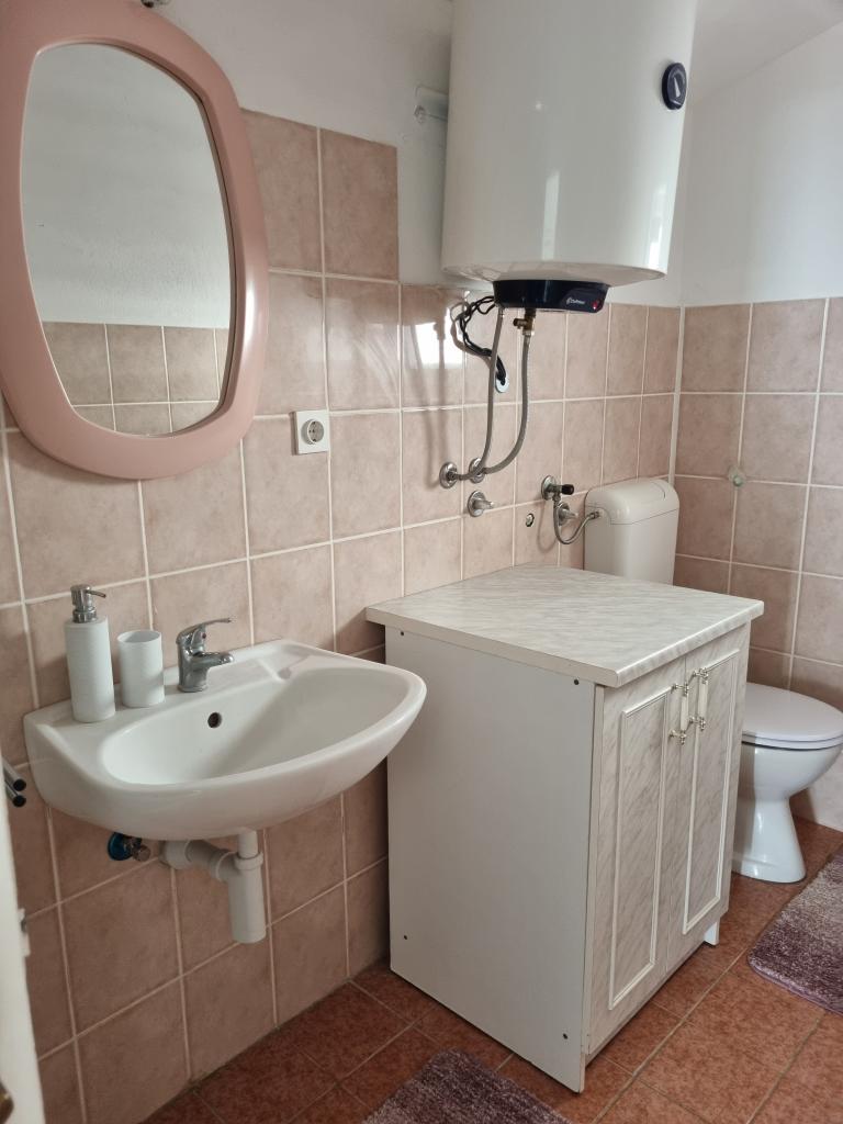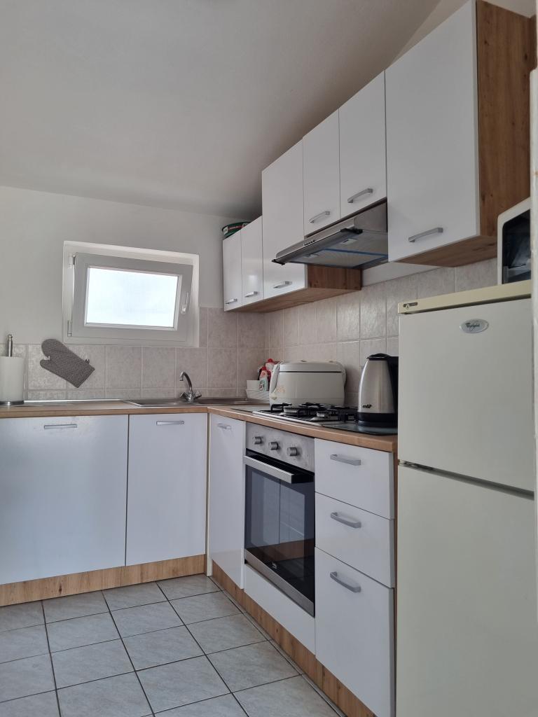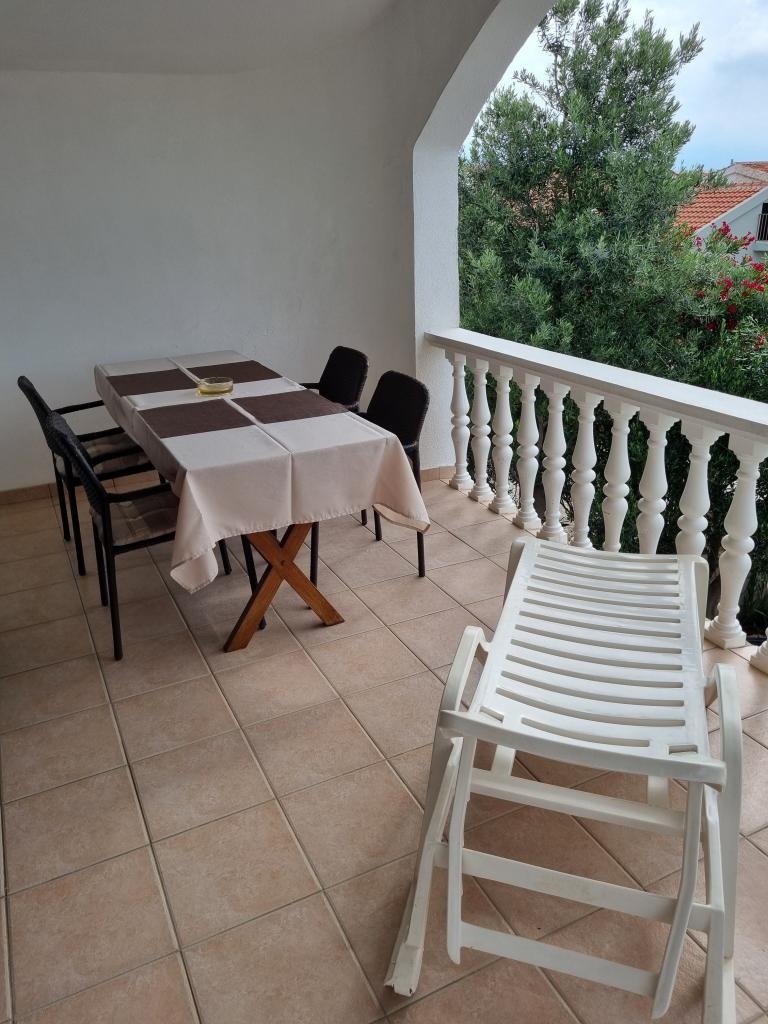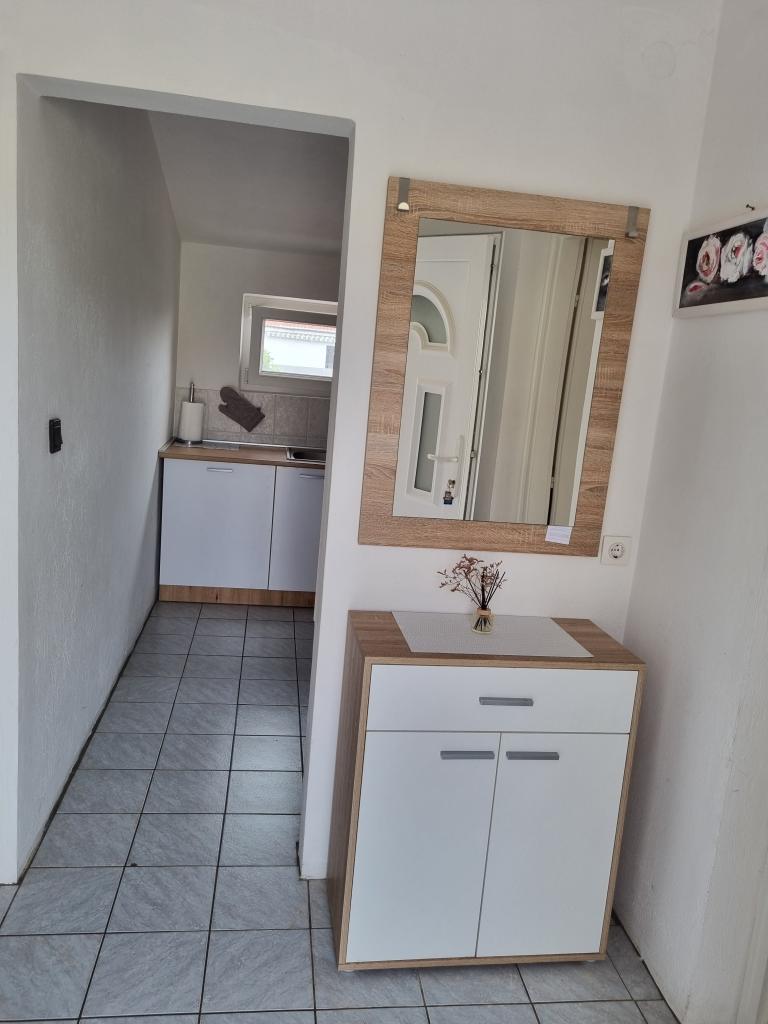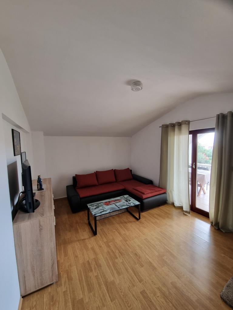 Luxuriös eingerichtete Wohnung mit sonniger Terrasse, 75m2 im ersten Stock des Hauses mit separatem Eingang. Schlafzimmer (2 Personen), Küche, Badezimmer, Flur, Esszimmer mit Wohnzimmer mit Ecksofa (2 Personen), Zimmer mit 2 separaten Betten, sonnige Terrasse, geeignet zum Essen und für geselliges Beisammensein mit der Familie. TV, IPTV, WLAN, Klimaanlage, Kühlschrank, Mikrowelle, Fritteuse, Wasserkocher, Föhn, Grillnutzung. Parkplatz für ein Fahrzeug im Hof. Eine friedliche und ruhige Straße führt zum Meer bzw. zum Strand, von wo aus man in 3 Minuten zu Fuß (Kieselstein) oder in 5 Minuten zum Sandstrand gelangt. Restaurant auf der Straße. Cafés, Pizzerien und Restaurants befinden sich entlang der 5 km langen Promenade am Meer, die sich zum Radfahren eignet. Markt 5 Minuten entfernt. Am Strand gibt es ein Angebot zum Verleih von Tretbooten, Stand-Up-Paddle-Boards, Elektrorollern, Fahrrädern, Quads, Kajaks sowie organisierte Inselrundfahrten mit dem Boot. Kurtaxe ist im Übernachtungspreis inbegriffen!