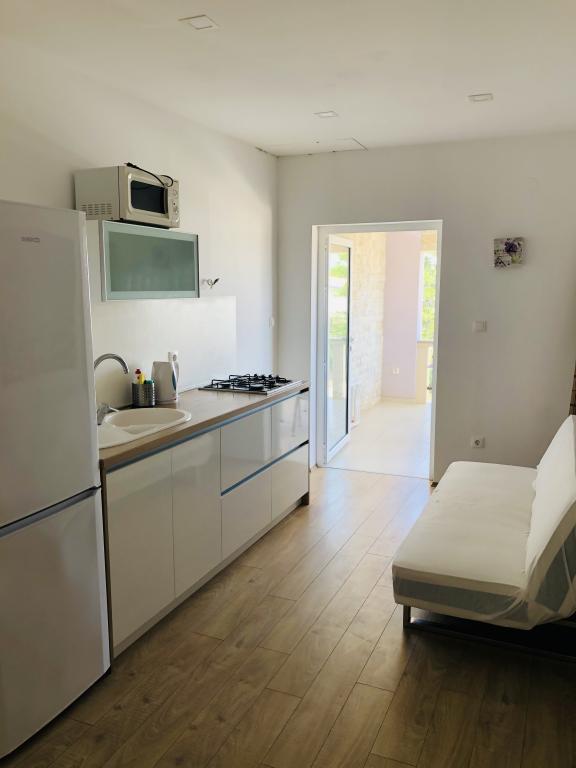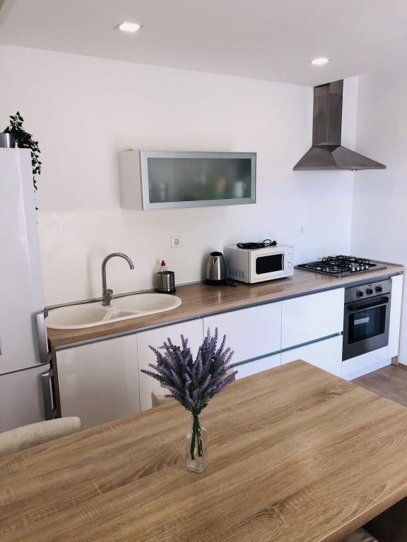 Die Apartments Lavanda sind Luxusapartments im Zentrum der Insel Vir auf der Südseite der Insel, nicht einmal 100 m vom Hauptstrand Jadro entfernt. Der Strand ist kieselig mit einem sandigen Meeresboden. Es bietet die Möglichkeit, Tretboote, Liegestühle, Jetski und ein Unterhaltungsanimationsprogramm für Kinder und Erwachsene zu mieten, ideal für Picigin. In der Nähe befinden sich der Haupthafen (Abfahrt von Booten zu Ausflügen in die Gewässer von Zadar), eine Strandbar, eine Konditorei, Pizzerien, ein Restaurant, eine Kaffeebar, ein Markt und ein neues Unterhaltungszentrum. Jedes Apartment verfügt über zwei separate Schlafzimmer mit Doppelbett, eine Küche mit Essbereich, ein Bad und eine geräumige Terrasse. Die Apartments verfügen über sauberes Trinkwasser aus dem Wasserhahn. . Die Apartments sind klimatisiert und verfügen über kostenlosen Internetzugang. Parkplätze stehen vor der Wohnung zur Verfügung. Im Hof gibt es einen Grill, der allen Gästen zur Verfügung steht. Wir möchten, dass Sie sich in unseren Apartments wie in Ihrem eigenen Haus wohl fühlen und dass Ihr Aufenthalt in Vir in Ihren schönen Erinnerungen bleibt :) Wir freuen uns auf Ihre Ankunft