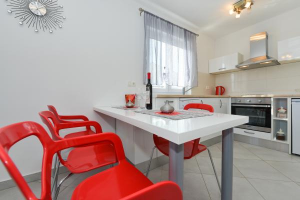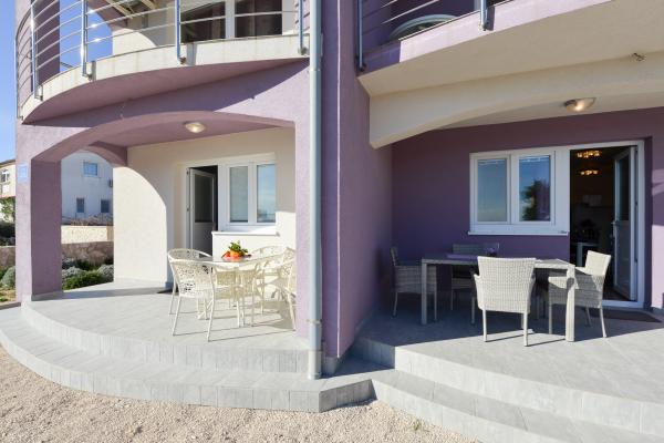 Modern ausgestattete Apartments in einem ruhigen Teil der Insel Vir, nur 300 Meter vom Zentrum, 70 Meter vom Meer und dem Kiesstrand entfernt. . Die Apartments sind mit allen Geräten wie Waschmaschine, Mikrowelle usw. ausgestattet und es gibt einen Esstisch auf der Terrasse.