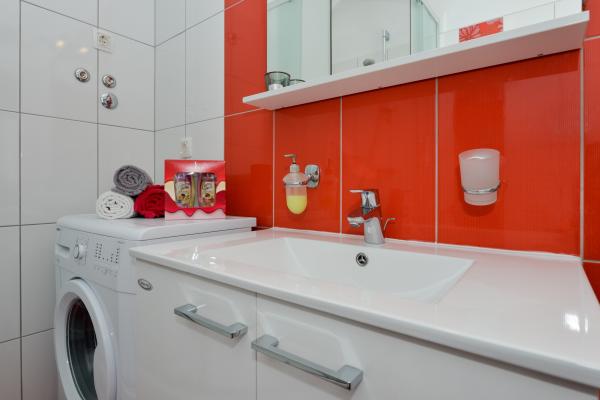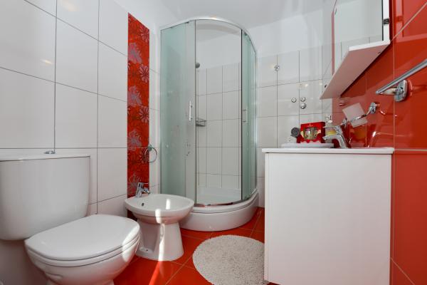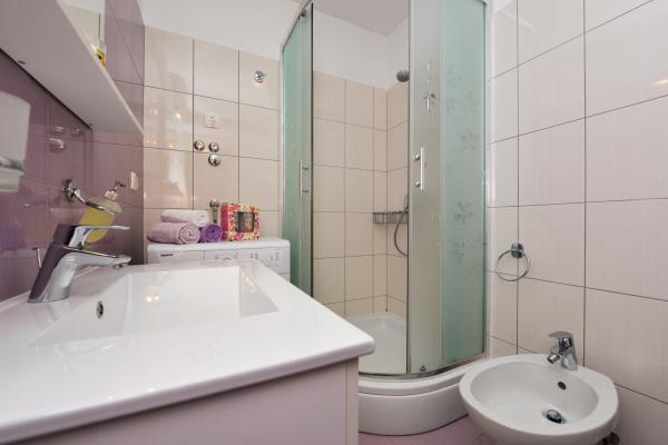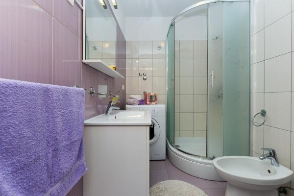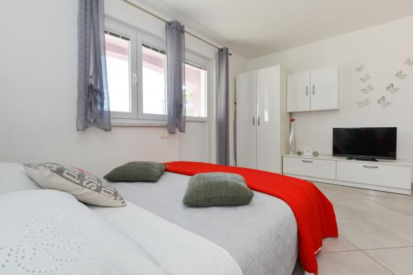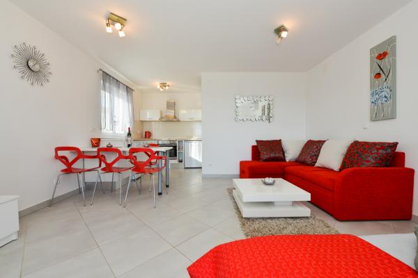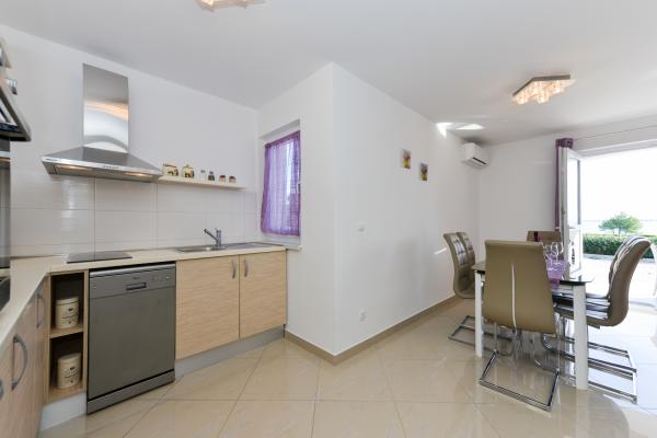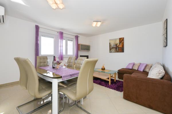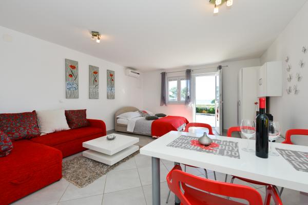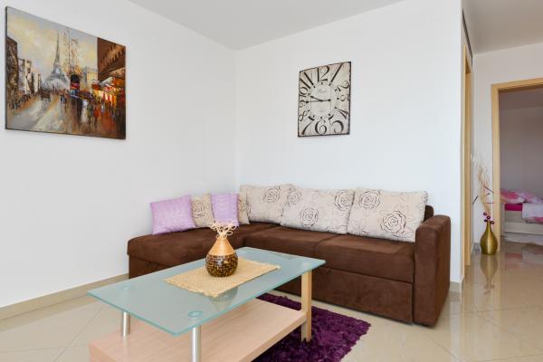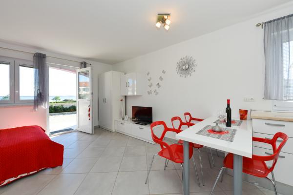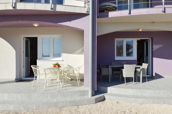 Schöne saubere neue Wohnung mit Meerblick. Sehr netter Besitzer. Bei der Ankunft hatten wir Bier und Saft gekühlt. Ruhige Lage, nahe am Strand - ca. 50m. Sehr wenige Leute am Strand. Kiesstrand mit Sand im Meer. Wasser sehr sauber. Es gab keine Mülleimer am Strand, was sich im losen Müll am Strandeingang widerspiegelte. Nicht weit von diesem Strand entfernt befindet sich der Strandkern (er war sehr überfüllt, laut) und in der Nähe Bars, Markt und Sehenswürdigkeiten (Wasserfahrräder, Hüpfburgen, U-Boote, Motorroller usw.) Geschäft und Bäckerei ca. 600 m von der Unterkunft entfernt. Wenn Sie Glasflaschen kaufen, müssen Sie den Block behalten, sonst werden sie nicht zurückgenommen.