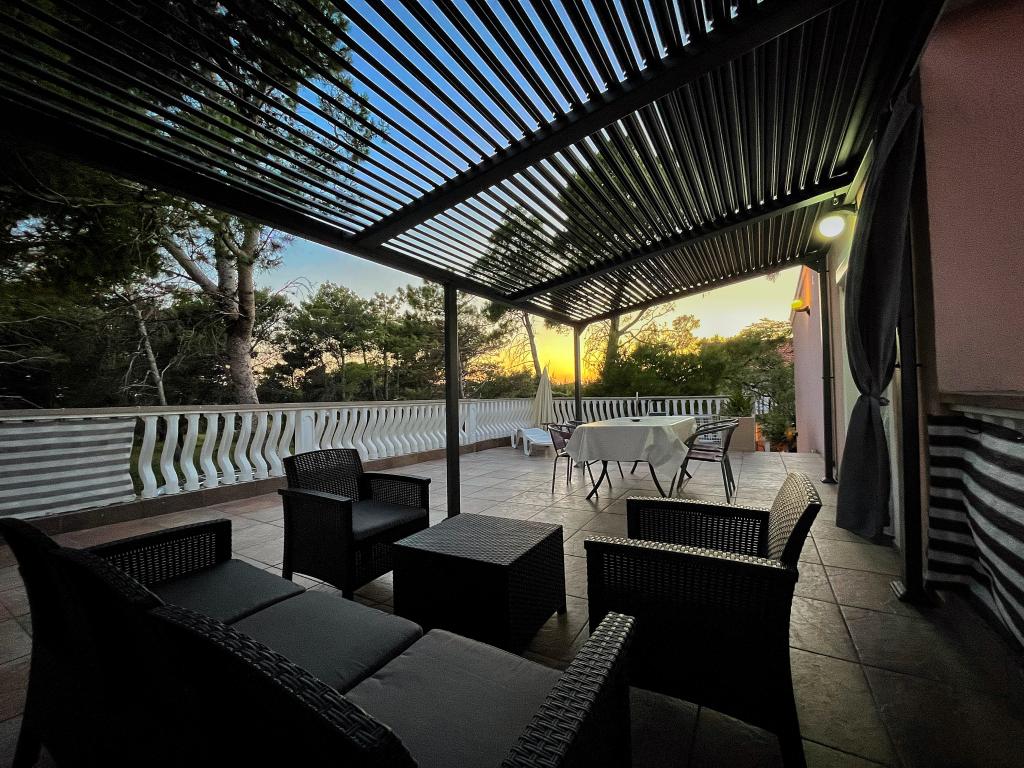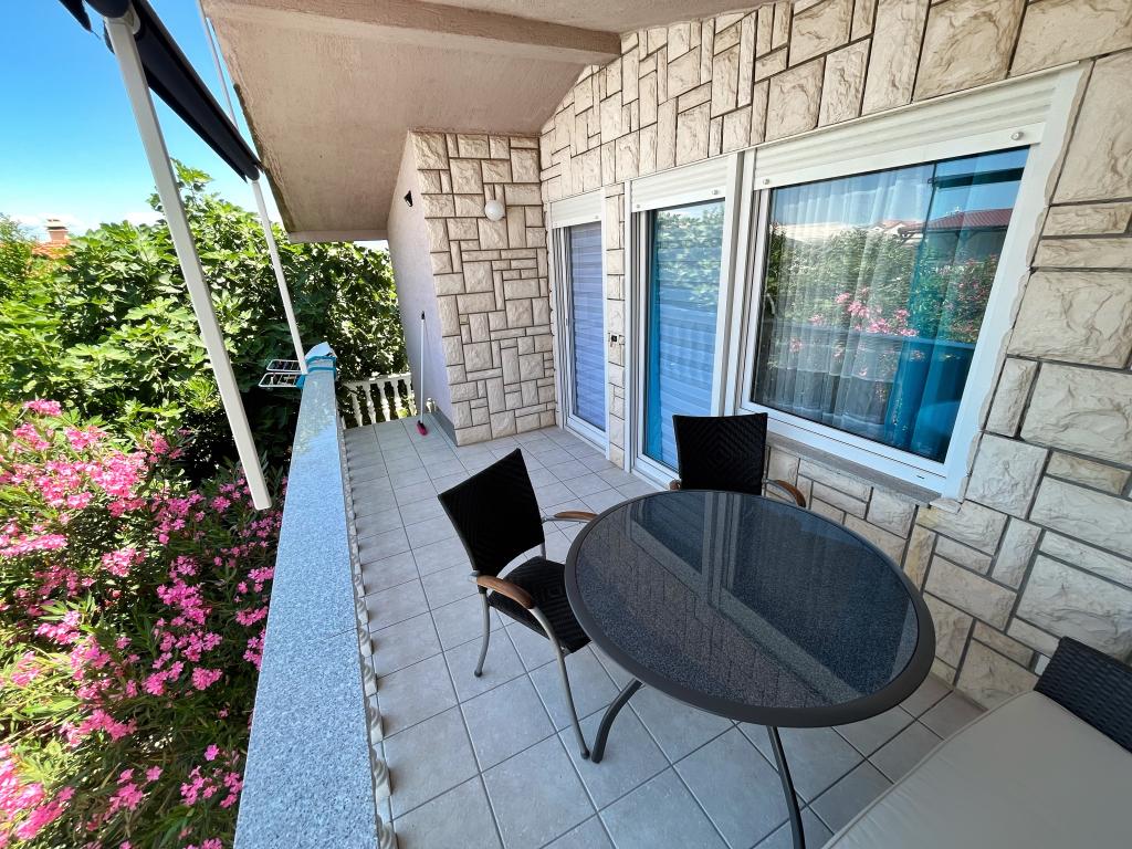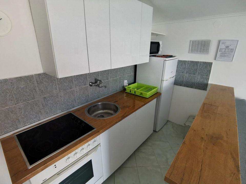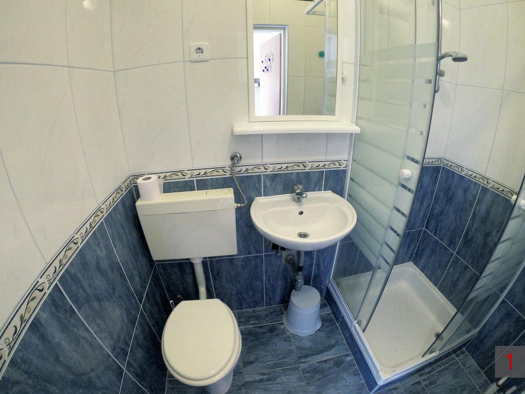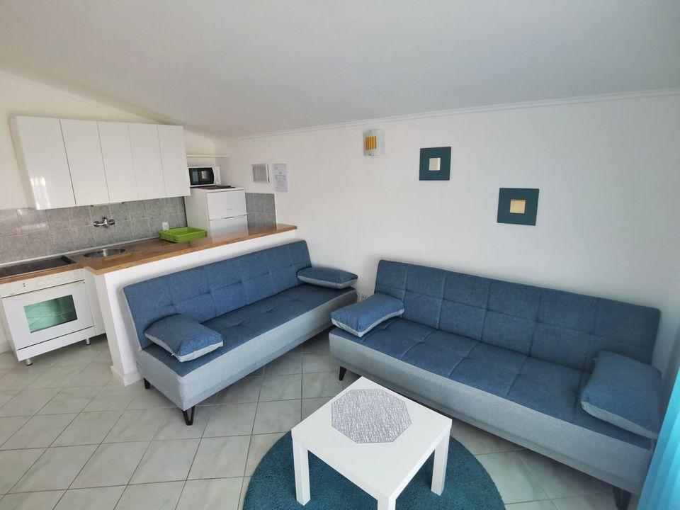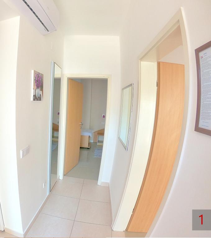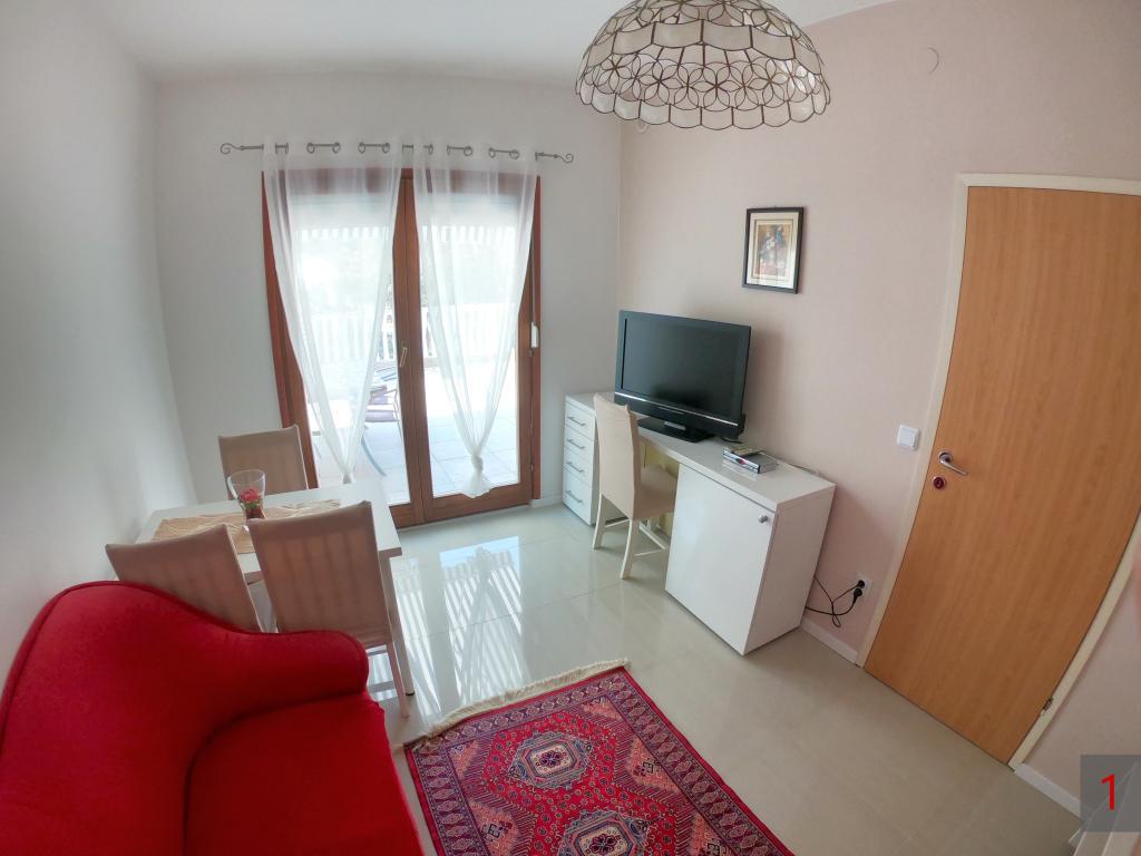 Apartment - 1 - besteht aus zwei separaten Zimmern, separater Küche und Badezimmer. In einem Zimmer steht ein Doppelbett, im anderen ein Ecksofa. Die Wohnung verfügt über eine überdachte Terrasse von 50 m2, umgeben von einem Pinienwald. Der große Vorteil der Wohnung ist ihre Lage am Ende einer Sackgasse, einer ruhigen und verkehrsfreien Straße und bietet Ihnen somit garantierte Ruhe und Privatsphäre. Innerhalb des Gebäudes ist ein Parkplatz vorhanden, ebenso ein Grill zum Grillen.