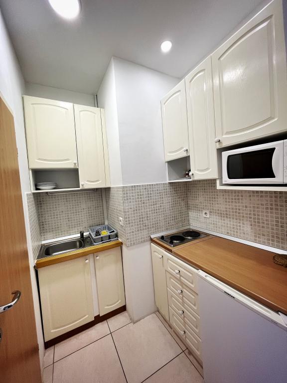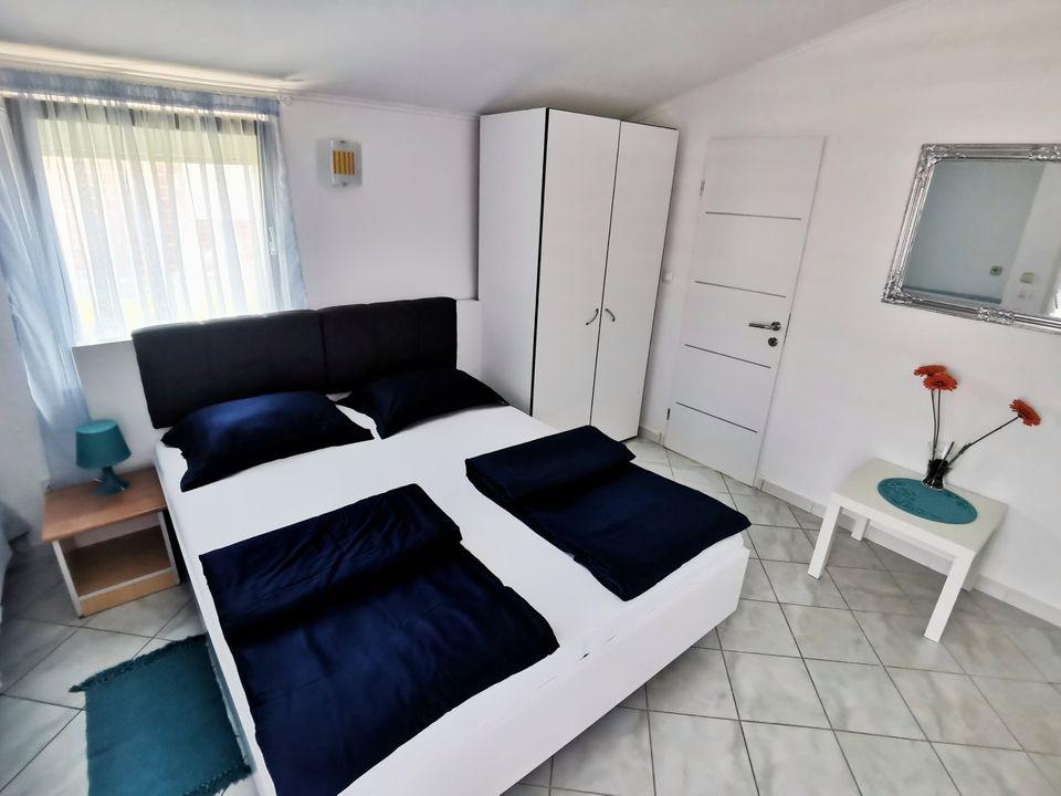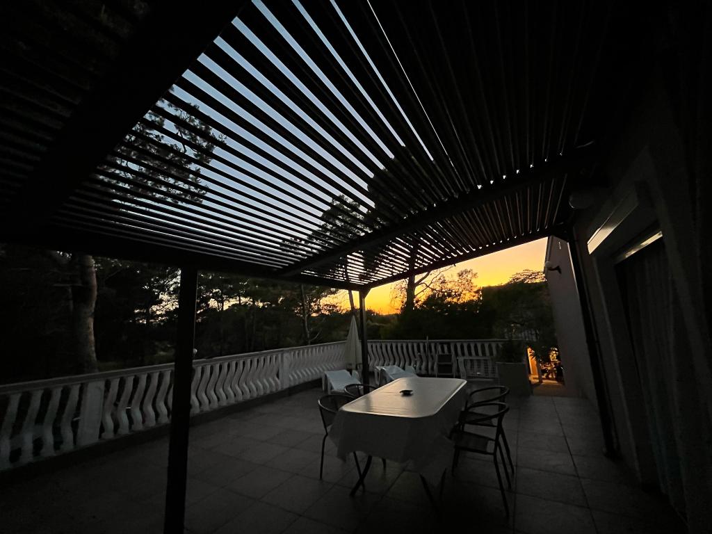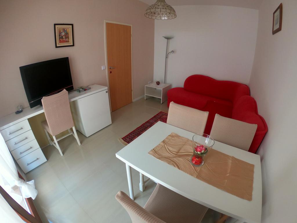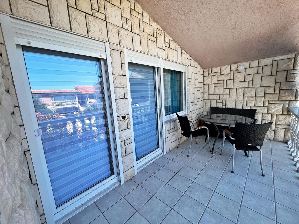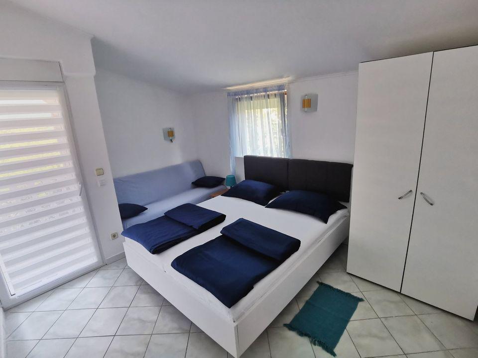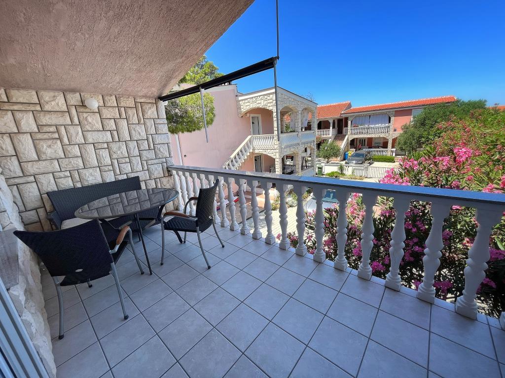 Apartment - 1 - besteht aus zwei separaten Zimmern, separater Küche und Badezimmer. In einem Zimmer steht ein Doppelbett, im anderen ein Ecksofa. Die Wohnung verfügt über eine überdachte Terrasse von 50 m2, umgeben von einem Pinienwald. Der große Vorteil der Wohnung ist ihre Lage am Ende einer Sackgasse, einer ruhigen und verkehrsfreien Straße und bietet Ihnen somit garantierte Ruhe und Privatsphäre. Innerhalb des Gebäudes ist ein Parkplatz vorhanden, ebenso ein Grill zum Grillen.