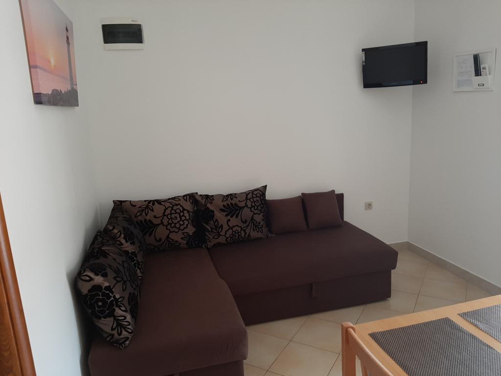 Es werden schön eingerichtete und gepflegte Apartments vermietet, bestehend aus einem Schlafzimmer mit Doppelbett, einem Kinderzimmer mit Etagenbett, einem Wohnzimmer mit Ecksofa mit LCD-TV, kostenlosem WI FI 4G-Geschwindigkeit. Die Küche befindet sich im Wohnzimmer und besteht aus oberen und unteren Elementen mit eingebautem Kochfeld und Backofen, Dunstabzugshaube, Spüle mit heißem und kaltem Wasser. Das Badezimmer besteht aus einer Duschkabine, einem Waschbecken, einem Schrank mit Spiegel und einer Toilette. Die Gäste bringen Handtücher und alle persönlichen Hygieneprodukte mit. Die Apartments verfügen über eine Terrasse mit einem runden Tisch und 4 Stühlen, ein Parkplatz für 1 Auto pro App ist im Hof vorhanden, wo den Gästen auch ein Grill und eine Außendusche zur Verfügung stehen. Die Wohnungen befinden sich in unmittelbarer Nähe des Hauptstrandes in Žitna uvala, verfügen über einen Energieausweis und sind zur Vermietung angemeldet. Am Strand gibt es 3 Cafés, Fast Food, Bäckerei, die den ganzen Tag arbeiten. Es gibt 3 Geschäfte im Umkreis von 300 m.