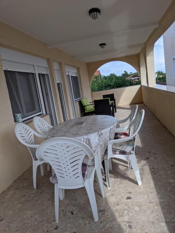 Auf der Südseite der Insel ist ein Haus mit 2 großen Wohnungen zu vermieten. Jede Wohnung ist für 4 - 7 Personen vorgesehen. Jede Wohnung verfügt über 3 Schlafzimmer, Wohnzimmer, Küche, Badezimmer mit 2 Duschkabinen, 2 Waschbecken, Toilette + 1 separate Toilette. Die große überdachte Terrasse hat einen Blick zur Südseite. Die Wohnung im zweiten Stock hat Meerblick. Die Wohnungen sind komplett ausgestattet. Im großen Hof gibt es eine Außendusche, einen Grill und einen großen Parkplatz.