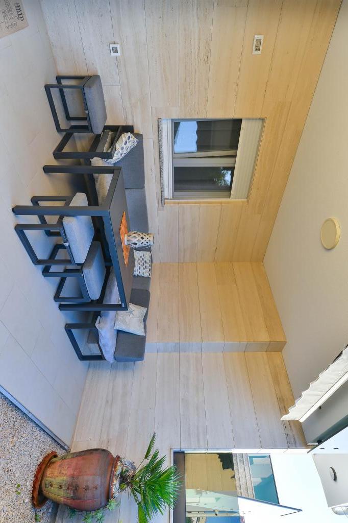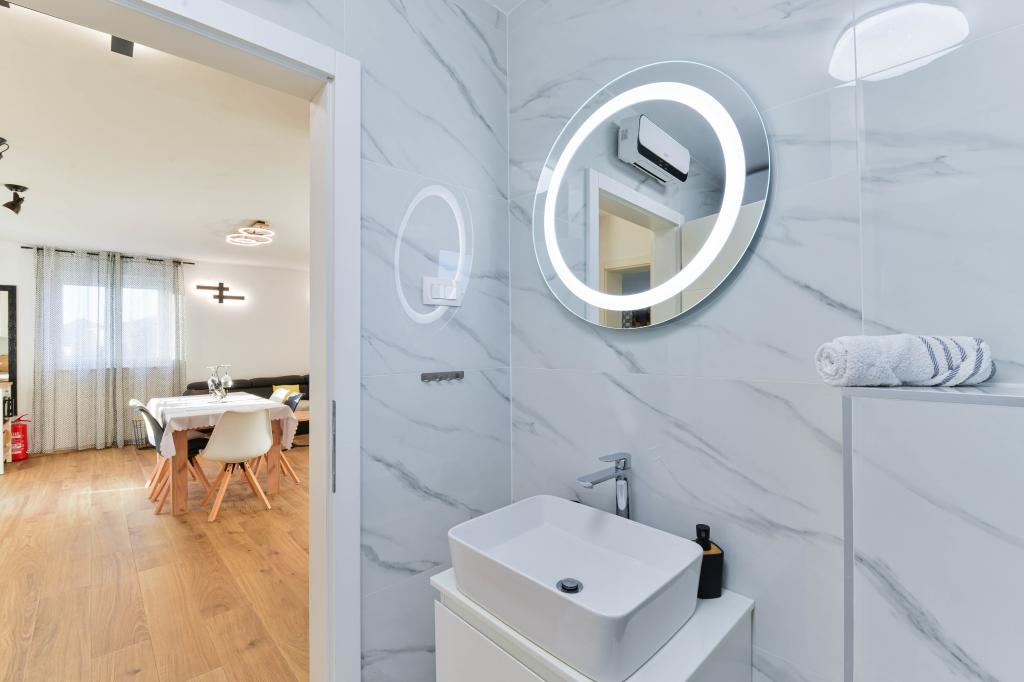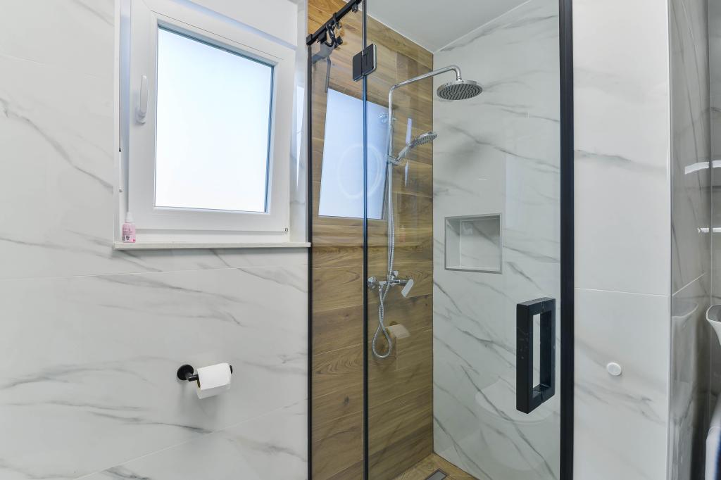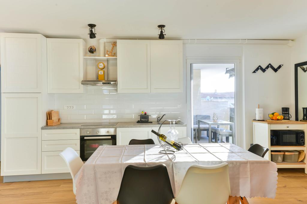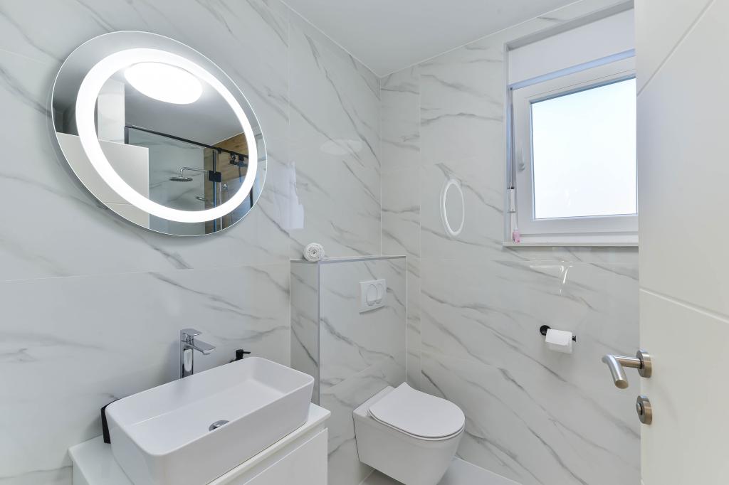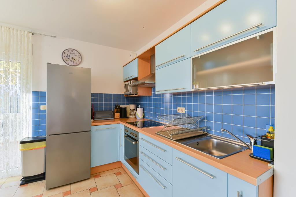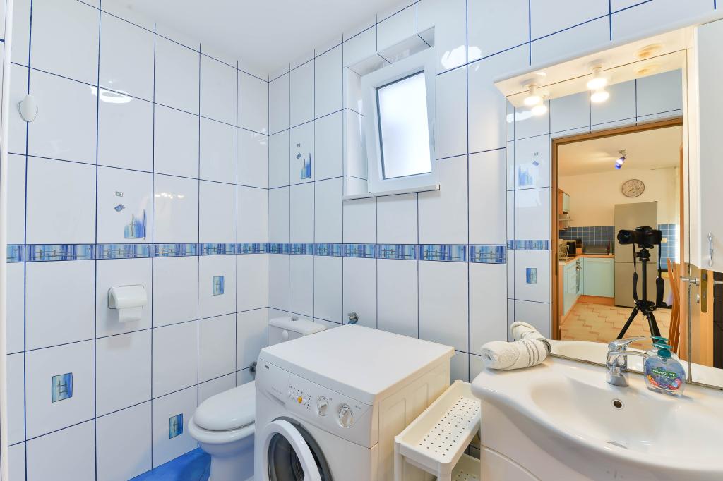 Voll ausgestattete Apartments, jedes Zimmer verfügt über eine eigene Klimaanlage und einen Fernseher und liegt 40 Meter vom Meer entfernt. Eine Bar, Restaurants und ein Supermarkt sind fußläufig erreichbar. Der Strand ist aus Kies und Beton, ein Sandstrand ist zehn Gehminuten entfernt. Das Haus verfügt über einen eigenen Parkplatz, Grill und Kinderschaukel im Garten. Den Gästen stehen Liegestühle, Sonnenschirme und Fahrräder zur Verfügung.
