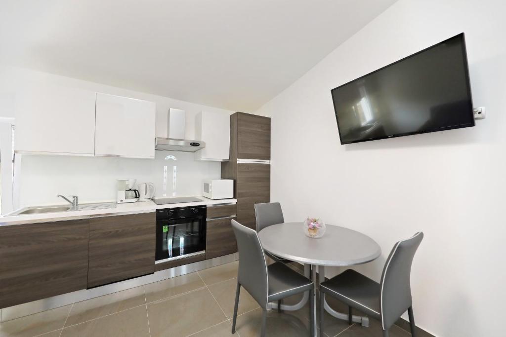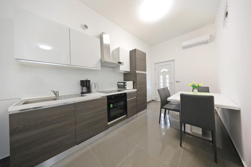 Wohnung für 6 Personen. Vor der Ankunft, toller Kontakt mit dem Besitzer. Viele Grüße Andel. Ein wunderbarer Aufenthalt. Die Besitzer waren sehr nett und hilfsbereit. Die Wohnung selbst ist sauber, geräumig, ausgestattet mit Geschirrspüler, Waschmaschine, Kaffeemaschine, Toaster, Mikrowelle, Klimaanlage und allen notwendigen Utensilien. zusätzlich Geschirrspültabs, Handtücher, Sonnenbänke. Leckere Tomaten und Trauben im Garten für die Gäste. Ganz in der Nähe des Jadro-Strandes. In der Nähe Geschäfte, Bäckereien und eine Krankenstation. Ich empfehle aufrichtig.