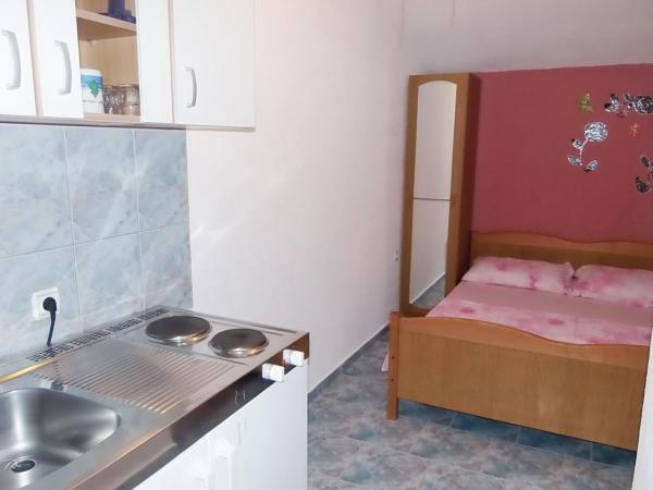 Moderne Wohnungen und Studios. Sand-und Kiesstrand (kristallklar) ist ein 2-minütigen Spaziergang entfernt. Das Stadtzentrum ist 10 Minuten entfernt. Große Parkplätze. Wir befinden uns im nördlichen Teil der Insel. Alle Apartments und Studios verfügen über einen Meerblick, Pag und Velebit.