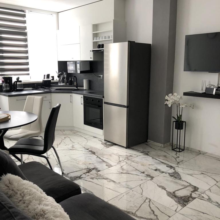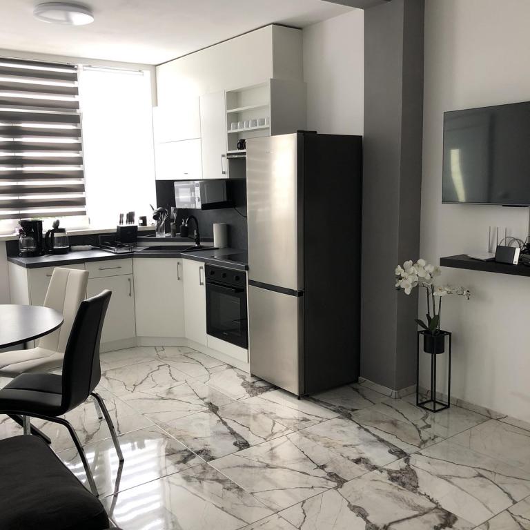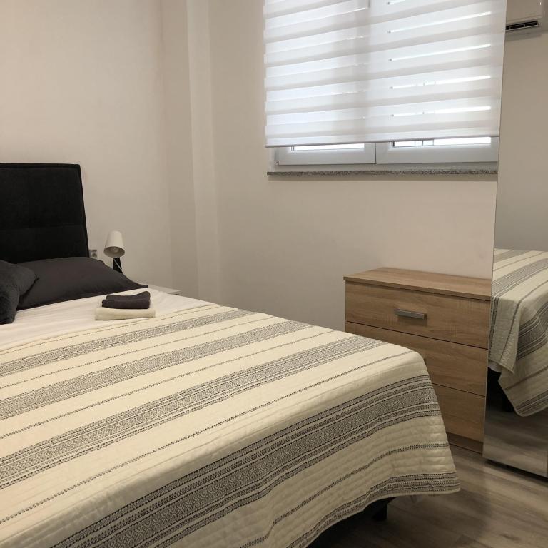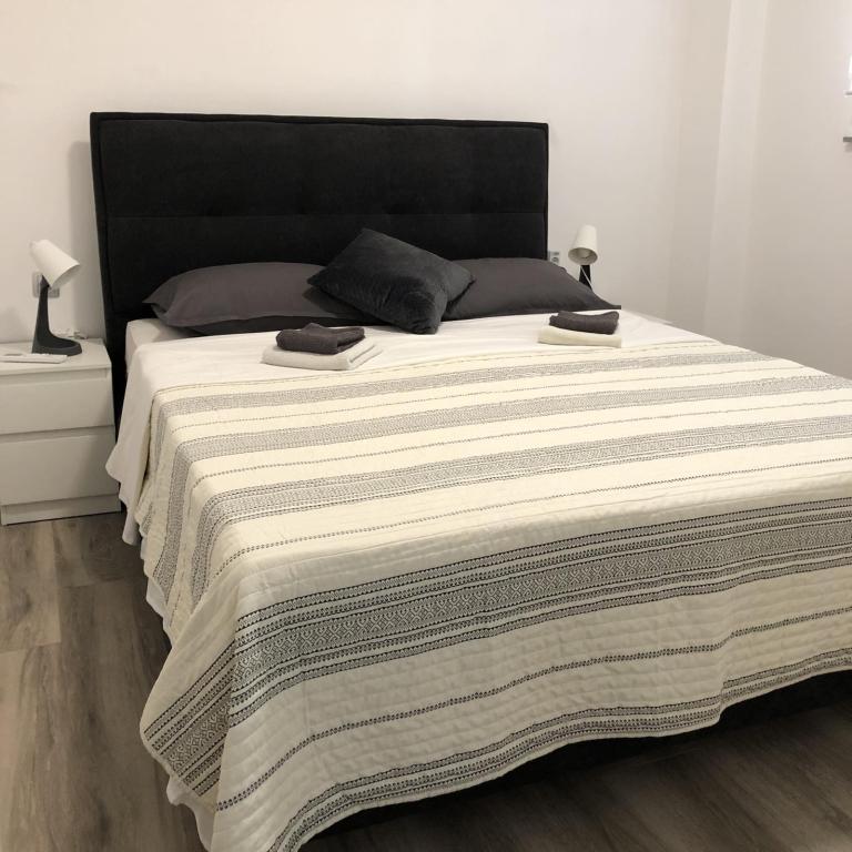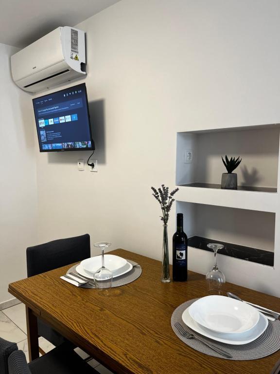 Die Apartments Šmit liegen in erster Reihe zum Meer, nur wenige Schritte vom Stadtstrand Jadro entfernt und sind somit ideal für Gäste, die Strand und Meer in unmittelbarer Nähe genießen möchten. Ein kostenloser Parkplatz im umzäunten Hof sorgt für zusätzliche Sicherheit und Ruhe während Ihres Aufenthalts. Jede Wohneinheit verfügt über eine Terrasse mit Meerblick, eine gemütliche Sitzecke und einen Fernseher. Die Apartments sind komplett ausgestattet, die Küchen beinhalten Kühlschrank, Mikrowelle und alle notwendigen Utensilien zur Zubereitung von Mahlzeiten. Jedes Apartment hat ein eigenes Badezimmer mit Dusche, und alle Räume sind klimatisiert, sodass Sie sich auch an warmen Sommertagen wohlfühlen. In unmittelbarer Nähe, nur 5 Gehminuten entfernt, finden Sie alle wichtigen Annehmlichkeiten der Insel Vir – Restaurants, Cafés, Geschäfte, eine Bäckerei und eine Strandpromenade. Die Apartments Jadro sind daher eine ausgezeichnete Wahl für Paare, Familien und Gäste, die einen Urlaub ohne Auto verbringen möchten.