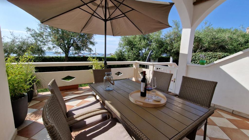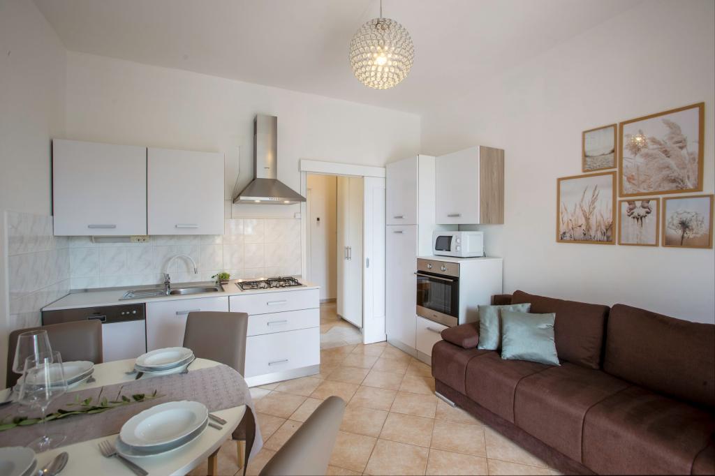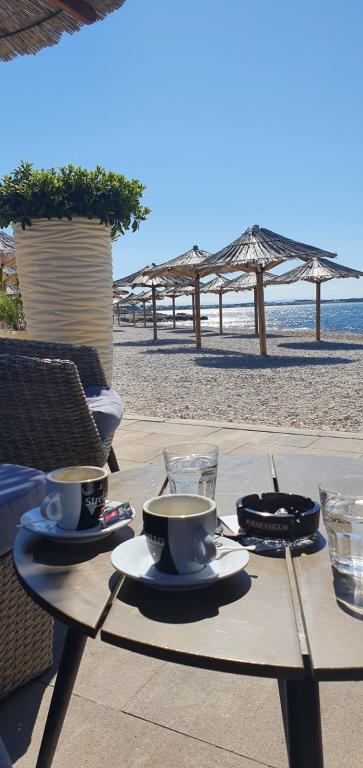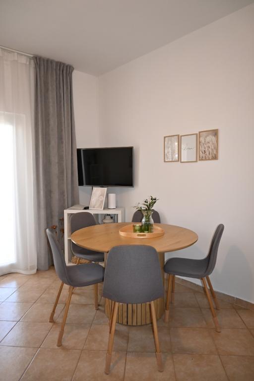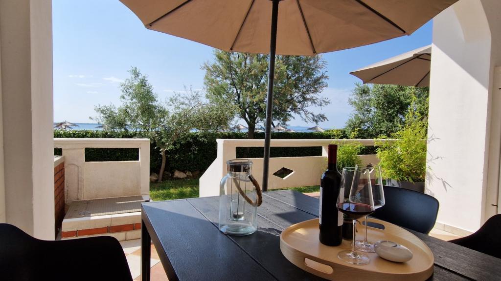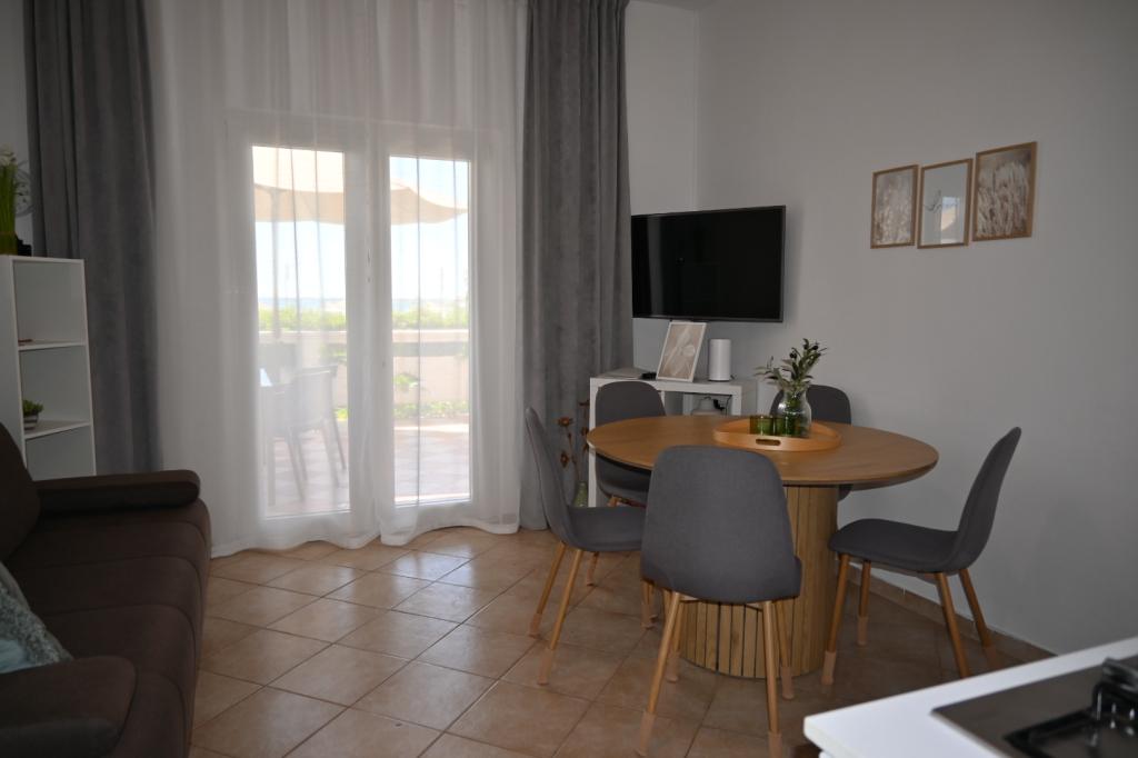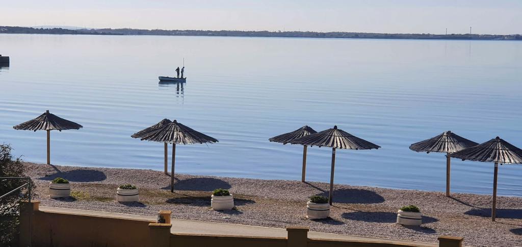 Unsere Apartments liegen in erster Reihe am Meer und sind komplett ausgestattet (Flachbildfernseher, Netflix, Filterkaffeemaschine, Nespresso-Maschine, Toaster usw.). Jedes Apartment verfügt über einen separaten Eingang und eine 16 m² große Terrasse mit Meerblick. Dank der Nähe zum Meer ist es ideal für Familien mit kleinen Kindern. Der Strand ist flach und sandig. Alle Gäste haben einen kostenlosen Parkplatz auf unserem Hof. Eine Waschmaschine steht allen Gästen im Gemeinschaftswaschraum zur Verfügung.