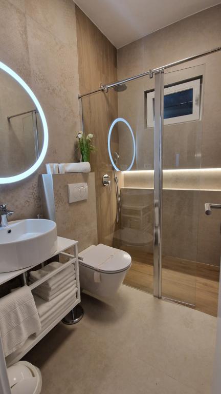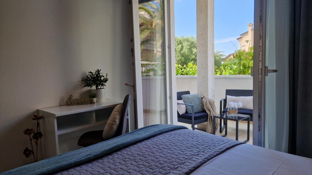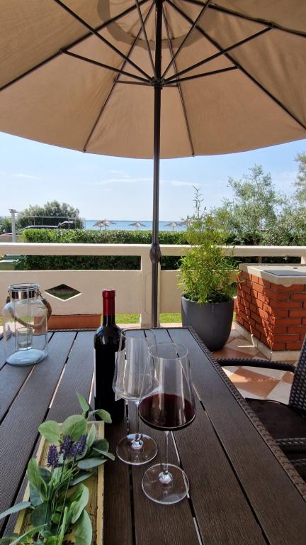 Wunderschöne Lage mit klimatisiertem Apartment und riesiger Terrasse mit Meerblick. Die Wohnung hat alles. Voll ausgestattete Küche mit allem, was wir brauchten. Das Schlafzimmer verfügt über das bequemste Bett, das Badezimmer ist geräumig und schön eingerichtet. Mit der Sauberkeit waren wir sehr zufrieden, da alles wirklich sauber ist. Ich freute mich auf den Morgenkaffee auf der Terrasse mit Blick auf das Meer und den wunderschönen grünen Garten, und die Kinder wollten immer nur auf der Terrasse essen, weil es für sie schön war. Die Gastgeber sind äußerst freundlich und hilfsbereit. Wir haben unseren Urlaub sehr gut verbracht, weil wir uns in einer so hervorragenden Lage wirklich erholt haben. Loben!