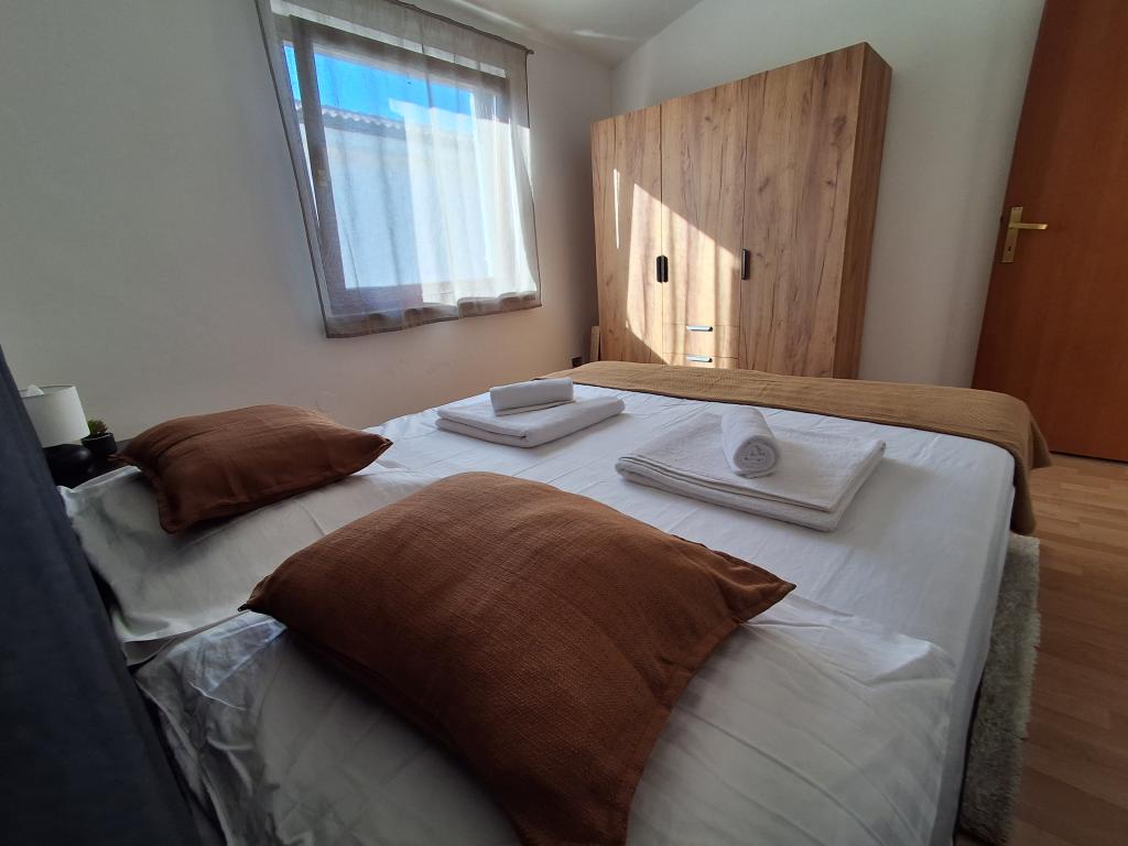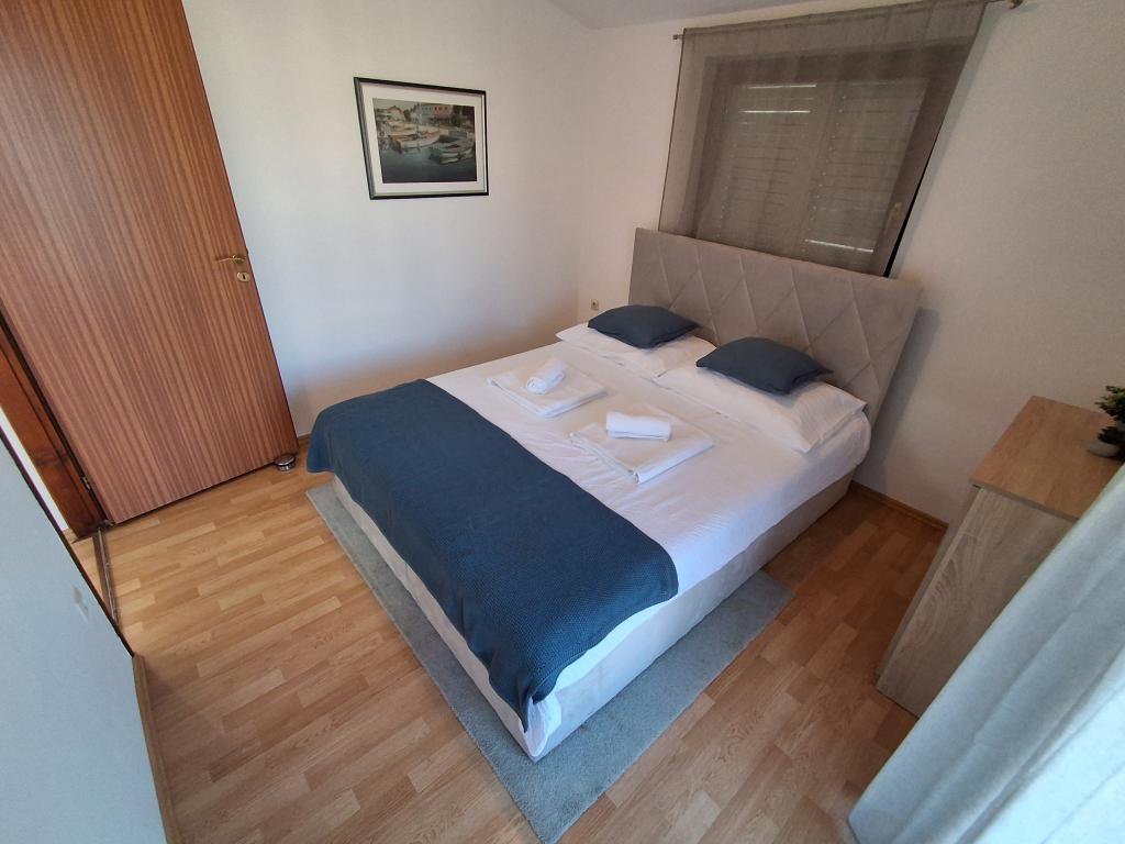 Das hübsch und modern eingerichtete Apartment für vier Personen auf der Insel Vir ist ideal für einen Familienurlaub. Es liegt nur wenige Minuten vom kinderfreundlichen Strand, dem Zentrum mit Küstenpromenade, der Post, der Kirche, der Bushaltestelle in unmittelbarer Nähe und dem Geschäft entfernt. Die Wohnung ist 50 m2 groß und hat einen separaten Eingang. Der Preis beinhaltet einen Parkplatz, Klimaanlage in der gesamten Wohnung, Grill, Sommerdusche im Hof. Es besteht aus zwei Schlafzimmern, Badezimmer mit Dusche, Küche mit Esszimmer und Terrasse. Es liegt in einem ruhigen Teil der Insel Vir, aber alles ist in Reichweite, perfekt für einen idealen Urlaub.