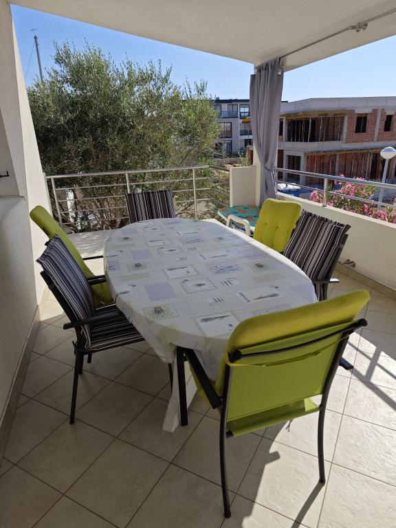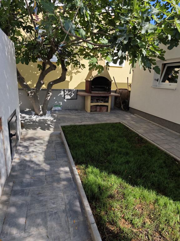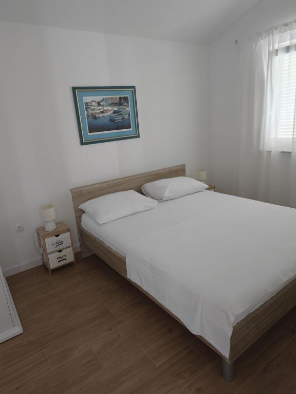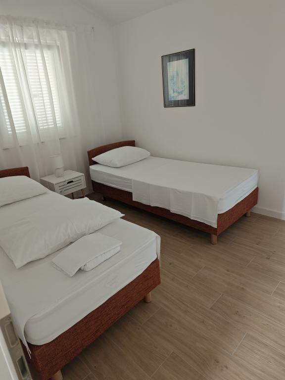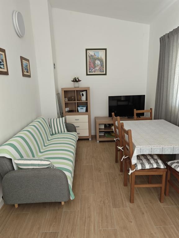 Wir vermieten eine Wohnung in dem Haus, erster Stock, separater Eingang, Parkplatz im Hof. Die Wohnung besteht aus zwei Zimmern, - Eines mit Doppelbett und - Das andere mit zwei Einzelbetten, - Wohnzimmer mit einem Schlafsofa, TV, Klima - Voll ausgestattete Küche, - Badezimmer mit Dusche, - Große Terrasse, Stellplatz und Grill Renoviert, Klimaanlage, 100 Meter vom Meer entfernt, für 5 Personen.