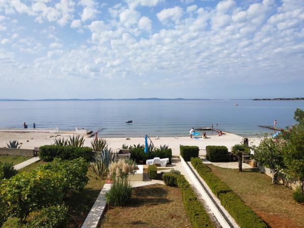 Stellen Sie sich vor, Sie wachen auf, verlassen das Haus und springen direkt ins Meer! Hier sind Sie genau richtig. Ein neues, modern ausgestattetes Studio-Apartment befindet sich im ersten Stock eines Gebäudes in erster Strandreihe. Der große Garten und der Strand direkt vor der Tür machen diese Unterkunft ideal für Familien mit kleinen Kindern und alle, die einen ruhigen Urlaub verbringen möchten. Wer etwas unternehmen möchte, erreicht das Zentrum von Vir mit seinem vielfältigen Angebot (Animation für Erwachsene und Kinder, Konzerte, Restaurants, Diskotheken) in nur 20 Gehminuten entlang der Küste. Das Studio-Apartment besteht aus einem Schlafzimmer mit Doppelbett, einem Wohnzimmer mit einer bequemen Schlafcouch für zwei Personen, einem Badezimmer mit Dusche, einer modern ausgestatteten Küche und einer Terrasse mit herrlichem Meerblick. Haustiere sind leider nicht erlaubt. Ihr Gastgeber kümmert sich um Ihren perfekten Aufenthalt und steht Ihnen bei Fragen, Empfehlungen oder sonstigen Anliegen gerne zur Verfügung.