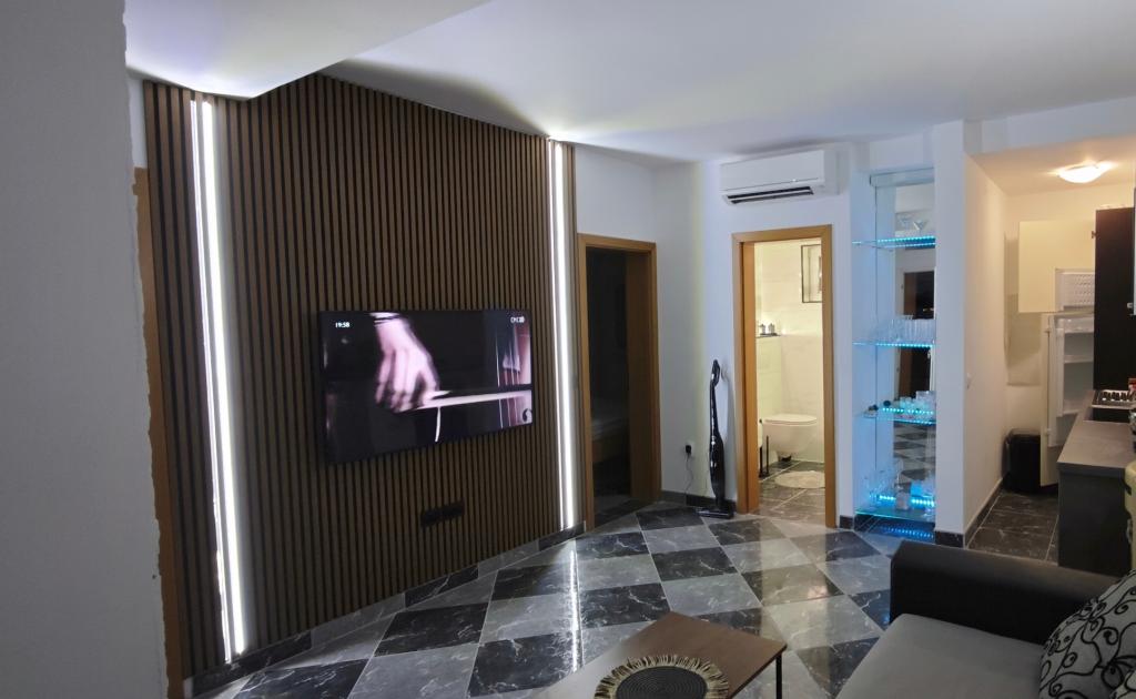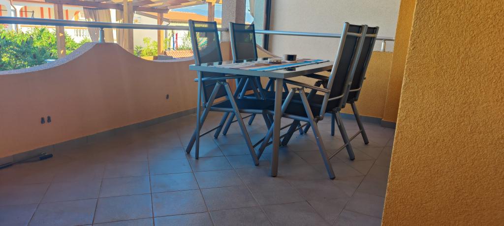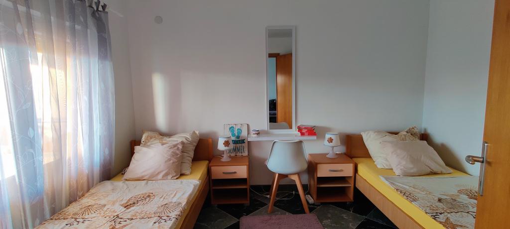 Komplett und modern eingerichtetes Apartment auf der Nordseite der Insel Vir. Die Insel ist durch eine Brücke verbunden. Es befindet sich im ersten Stock eines Familienhauses, 90 Meter vom Strand von Zitna entfernt. Zur Wohnung gehört ein eingezäunter Hof mit Parkplatz und gemauertem Grill, den die Gäste nutzen können. Das Apartment ist mit einer Klimaanlage, kostenfreiem WLAN, einer Dolce Gusto-Kaffeemaschine, einem Wasserkocher und einem Wasserspender ausgestattet.