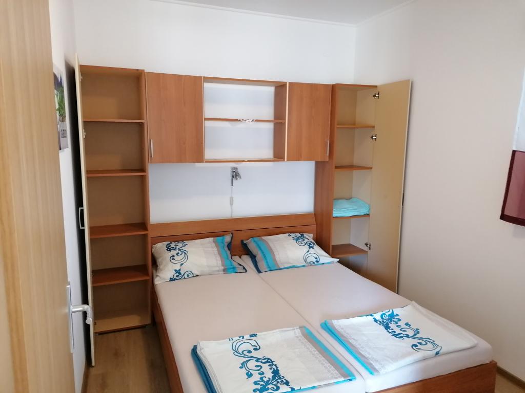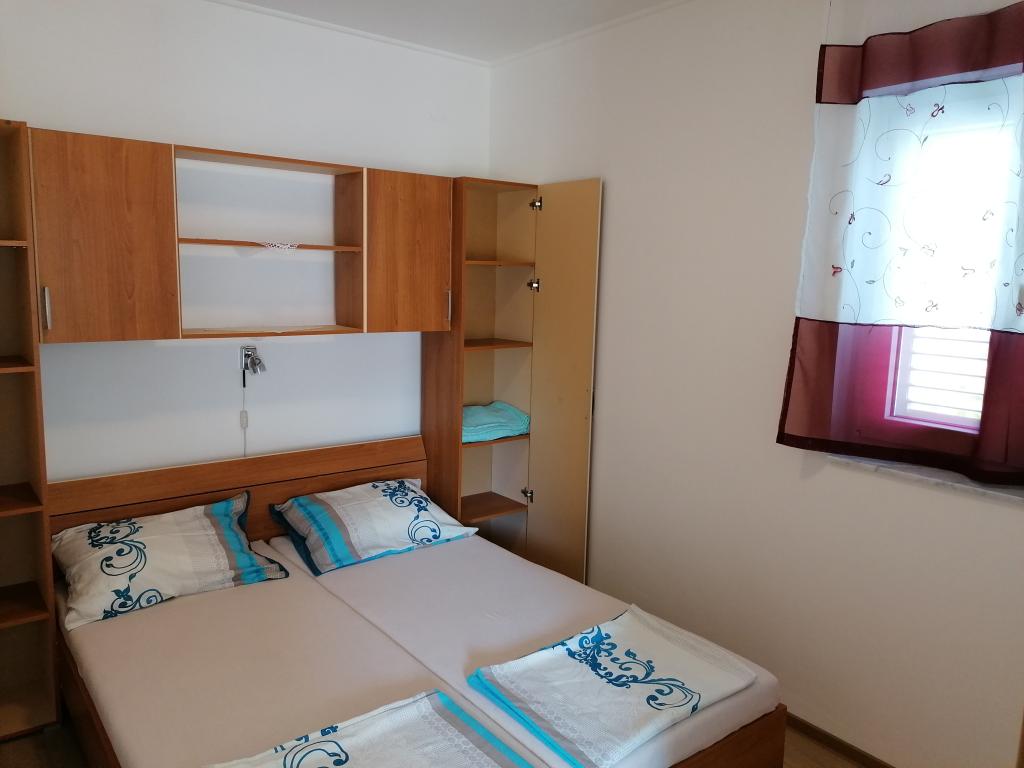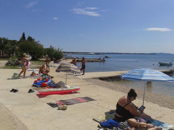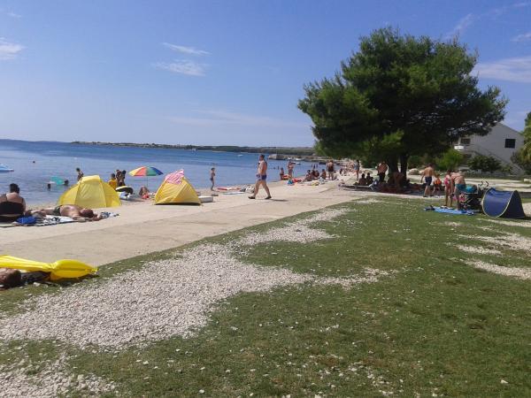 Willkommen auf der Insel Vir in der Wohnung der Familie Mužina, die ihre Dienste seit vielen Jahren anbietet. Das Haus liegt auf der Südseite der Insel im ruhigen Dorf Luka und ist ideal für Paare mit Kindern, die rund um das Haus einen eigenen Bereich zum Spielen und einen sicheren Weg zum Strand haben. Das Zentrum der Insel erreichen Sie von der Wohnung aus über eine Promenade am Meer entlang. Die Wohnung ist komplett ausgestattet und klimatisiert. Das Haus ist an Stadtwasser und Abwasser angeschlossen. Es verfügt über zwei Schlafzimmer mit einem Doppelbett (ein Schlafzimmer mit Terrasse und TV), eine Küche, ein Badezimmer und eine Terrasse mit Tisch und Stühlen. Gesicherte Nutzung des Internets. Die Wohnung ist ideal für vier Erwachsene oder eine Familie mit zwei oder drei kleineren Kindern. Zum Strand sind es 5 Gehminuten und zum Supermarkt 2 Gehminuten. Nutzung des Außengrills, der im Schatten eines großen Feigenbaums liegt, sowie gesicherter Parkplatz. Die Möglichkeit, eine Außendusche zu nutzen.