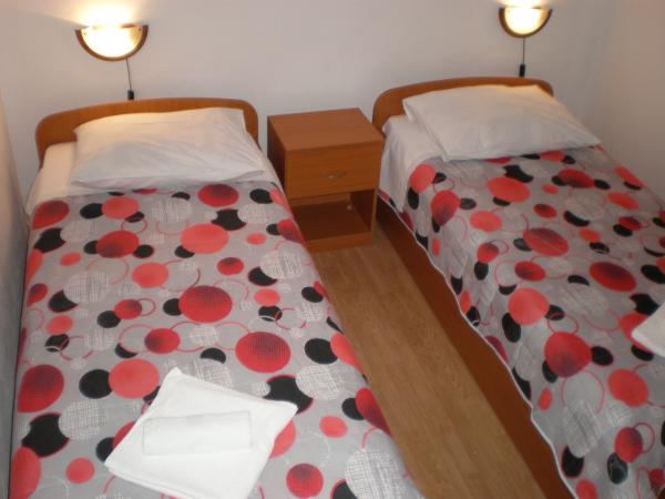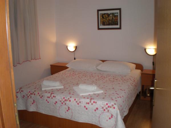 Apartments Bogdan in einem ruhigen Teil der Stadt auf einer Fläche von 1100 m2. Einrichtungen befinden sich weniger als 10 Minuten bis zum Stadtzentrum und 15 Minuten zu Fuß zum Meer. Großer Garten, umgeben von Rasen, Blumen und Grün bietet seinen Gästen einen angenehmen und erholsamen Urlaub. Alle drei Wohnungen befinden sich im Erdgeschoss. Ferienwohnung A1 Kapazität 2 1 Person, Appartement A2 4 1 Person und A-3 Kapazität 6 2 Personen. Ausstattung: Außensitzmöbel, Schaukeln, Parkplatz, für mehr von Automobil, Wohnung A1 verfügt über eine eigene Garage, die zum Objekt nächsten liegt, Grill. Es gibt auch Tischtennis, Spielplatz für Kinder. Alle Wohnungen sind klimatisiert und ausgestattet mit; Sat-TV, Wi-Fi, Waschmaschinen, Kühlschrank mit Gefrierfach, kleine Haushaltsgeräte; Kaffeemaschine, Wasserkocher, Toaster. und alles andere, was für die Atmosphäre der Häuslichkeit erforderlich ist. Die freundlichen Gastgeber sind für die Gäste (Jahre Erfahrung) für weitere Informationen benötigt oder Unterstützung jeglicher Art.
