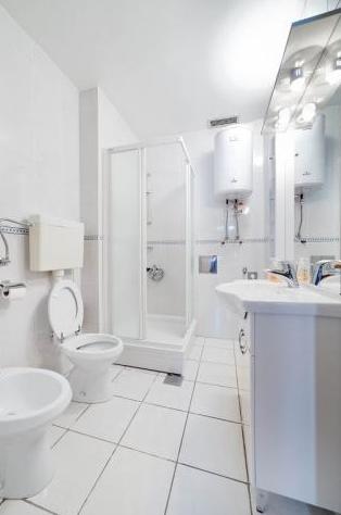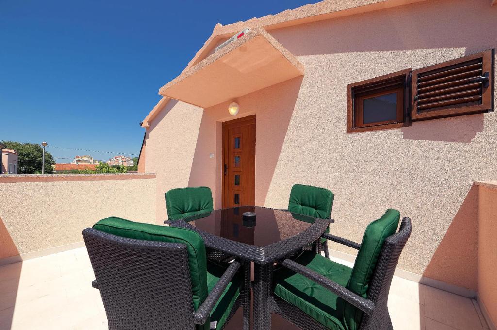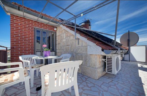 Vollständig und modern ausgestattete Apartments in einer ruhigen Gegend von Vodice, 300 Meter vom Meer entfernt. Die Anlage befindet sich 5 Gehminuten vom Blue Beach und dem Punta Hotel und 15 Minuten vom Zentrum von Vodice entfernt. Am Strand befindet sich der größte Aquapark an der Adria, bestimmt für Kinder und Erwachsene. Wir bieten qualitativ hochwertige Unterkunft in neuen, komplett ausgestatteten und modernen Apartments. Die Wohnung im Obergeschoss von 48 m2 besteht aus einem Schlafzimmer, einem Badezimmer mit Dusche, einer Küche mit Esszimmer, einem Wohnzimmer mit einem Bett, zwei Terrassen mit Meerblick, zwei LCD-TV/SAT-Receivern, Klimaanlage, kostenloses WiFi-Internet und ein Parkplatz. Die größere Wohnung im Erdgeschoss, 70 m² groß, besteht aus zwei Schlafzimmern, Badezimmer mit Dusche, Küche, Esszimmer, Wohnzimmer mit Bett, zwei großen Terrassen, drei LCD-TV/SAT-Empfängern, Klimaanlage, kostenlosem WLAN-Internetzugang und zwei Parkplätzen Räume.