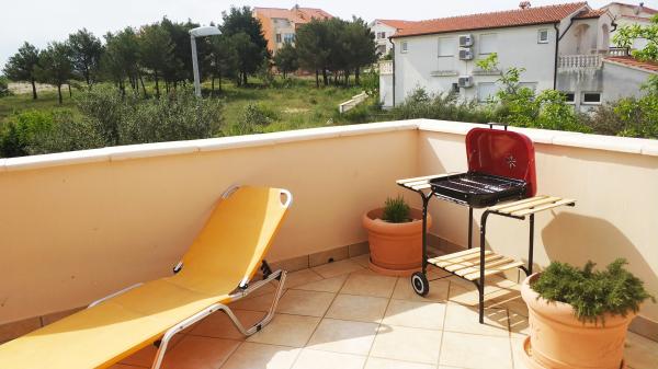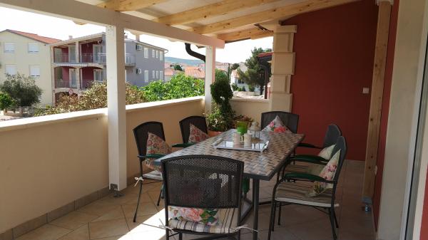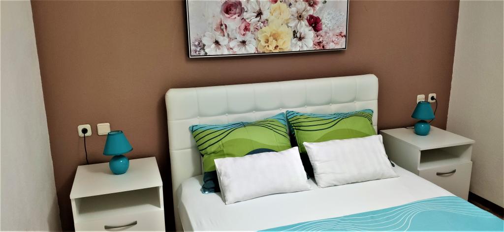 Die Apartments befinden sich in einer ruhigen Gegend von Vodice, umgeben von verschiedenen Pflanzen, mit einem eingezäunten Garten und Parkplätzen. Die Terrassen im ersten Stock sind teilweise überdacht und teilweise zum Sonnenbaden geöffnet. Im Erdgeschoss ist sie vollständig überdacht. Die Apartments im ersten Stock haben einen eigenen Grill und das Apartment im Erdgeschoss verfügt über einen Grill im Hof. Zum Strand 10 Minuten zu Fuß, 15 Minuten ins Zentrum. Alle Apartments sind modern ausgestattet und bestehen aus einem geräumigen Wohnzimmer, einem Esszimmer und einer Küche, zwei Schlafzimmern, einem Bad und einem Flur sowie einer großen Terrasse. Jedes Apartment verfügt über eine Waschmaschine, ein Bügeleisen, ein Bügelbrett und einen Haartrockner sowie kostenfreies WLAN. Die Küche ist komplett mit allem ausgestattet.