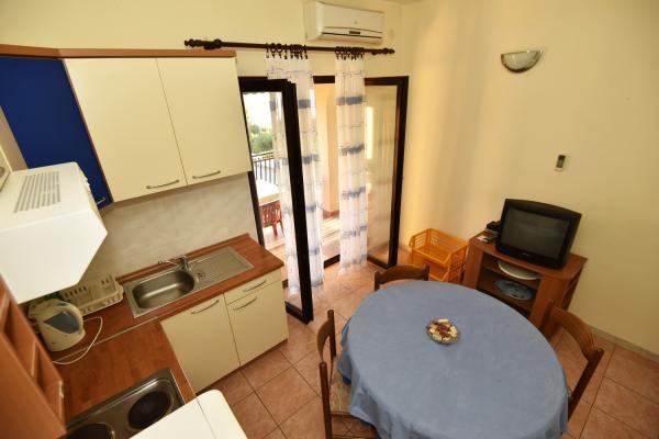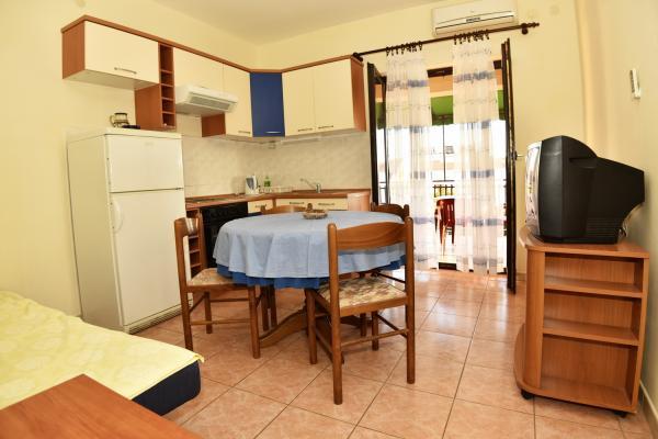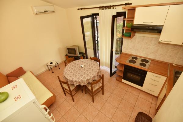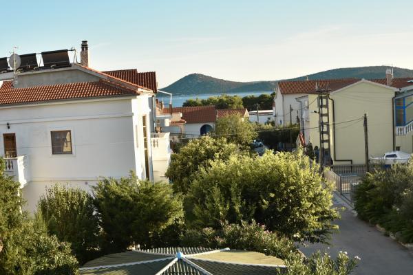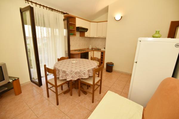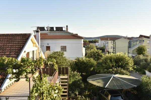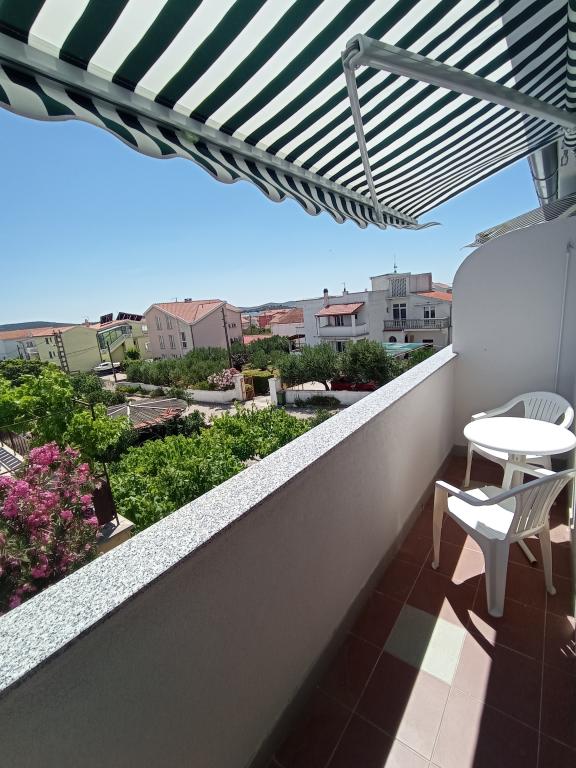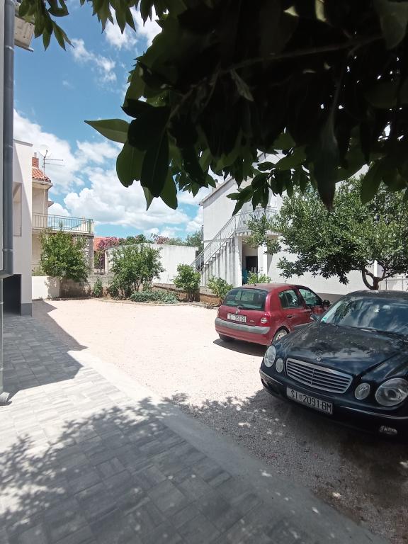 Vodice ist eine schöne Wohnung mit einer großen Terrasse, 2 Zimmern und einem zusätzlichen Bett in der Küche;