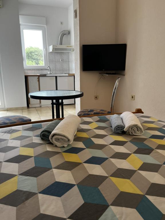 Die Apartments Kresović befinden sich in Vodice, in einer ruhigen Straße, nur 5 Gehminuten vom Zentrum von Vodice entfernt. Unsere Apartments liegen im 2. und 3. Stock des Hauses und bieten einen wunderschönen Blick auf das Meer. Alle sind komplett ausgestattet und möbliert, verfügen über ein Doppelbett und ein Schlafsofa, eine voll ausgestattete Küche und ein Badezimmer und Bettwäsche und Handtücher sind selbstverständlich im Wohnungspreis inbegriffen. Zur Ausstattung gehören außerdem eine Klimaanlage, Sat-TV und WLAN sowie ein Parkplatz, der zu jeder Wohnung gehört und sich in unserem Hof befindet. Wir überlassen es Ihnen, zu entscheiden, ob Sie uns besuchen und alles erleben möchten, was Vodice Ihnen zu bieten hat!